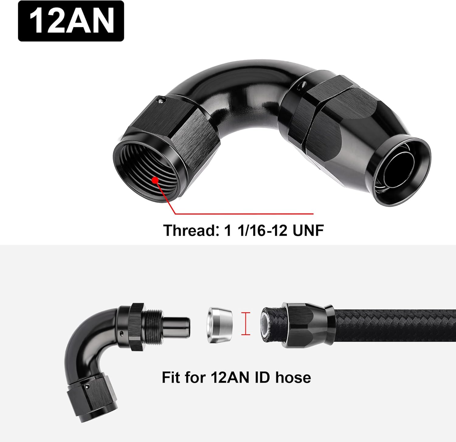 - [Product Size & Parameter] Size: 12AN. Thread Size: 11/16-12 UNF. Working Pressure: 1500PSI. Working Temperature Range: -40°F-250°F. Angle: 120 Degrees. Note: Please verify the hose size before purchase.