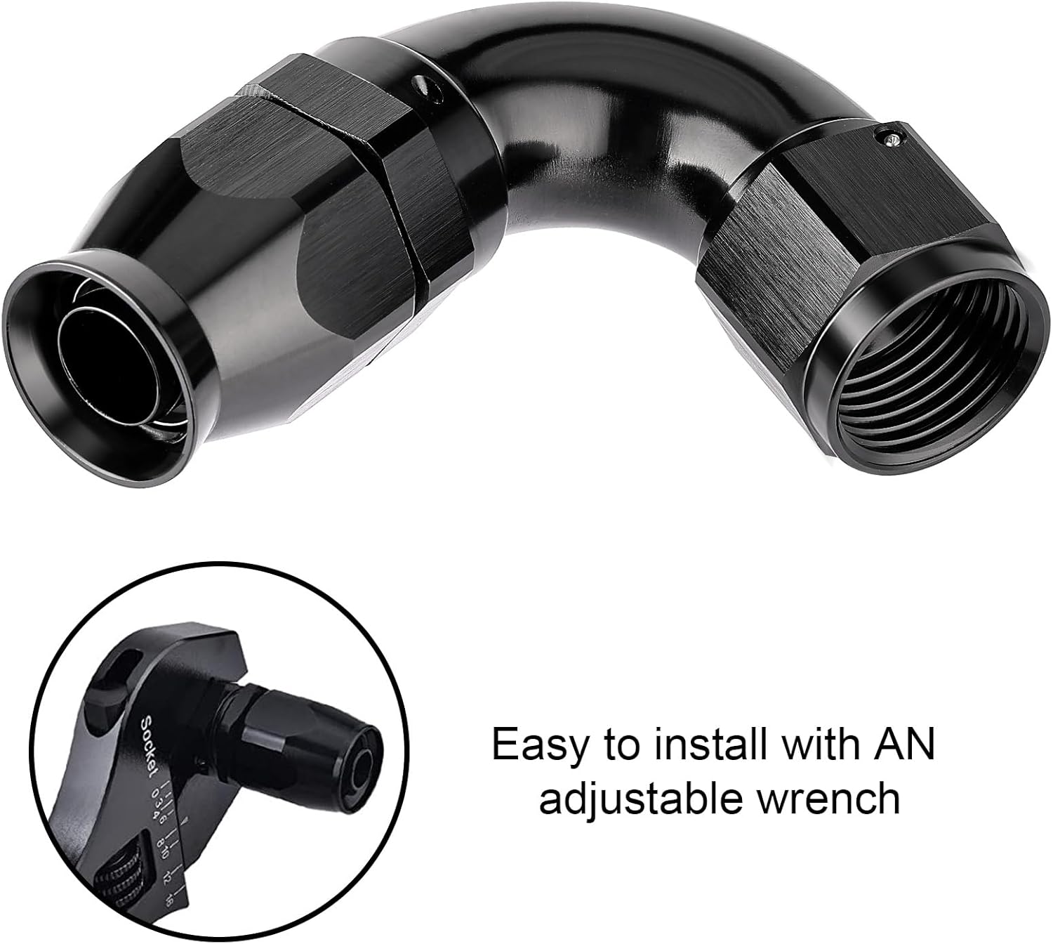 - [Built to Last] The one-piece PTFE hose end fitting is made from lightweight 6061-T6 aluminum alloy, and a black anodized finish on the surface increases durability, anti-corrosion, and wear resistance.