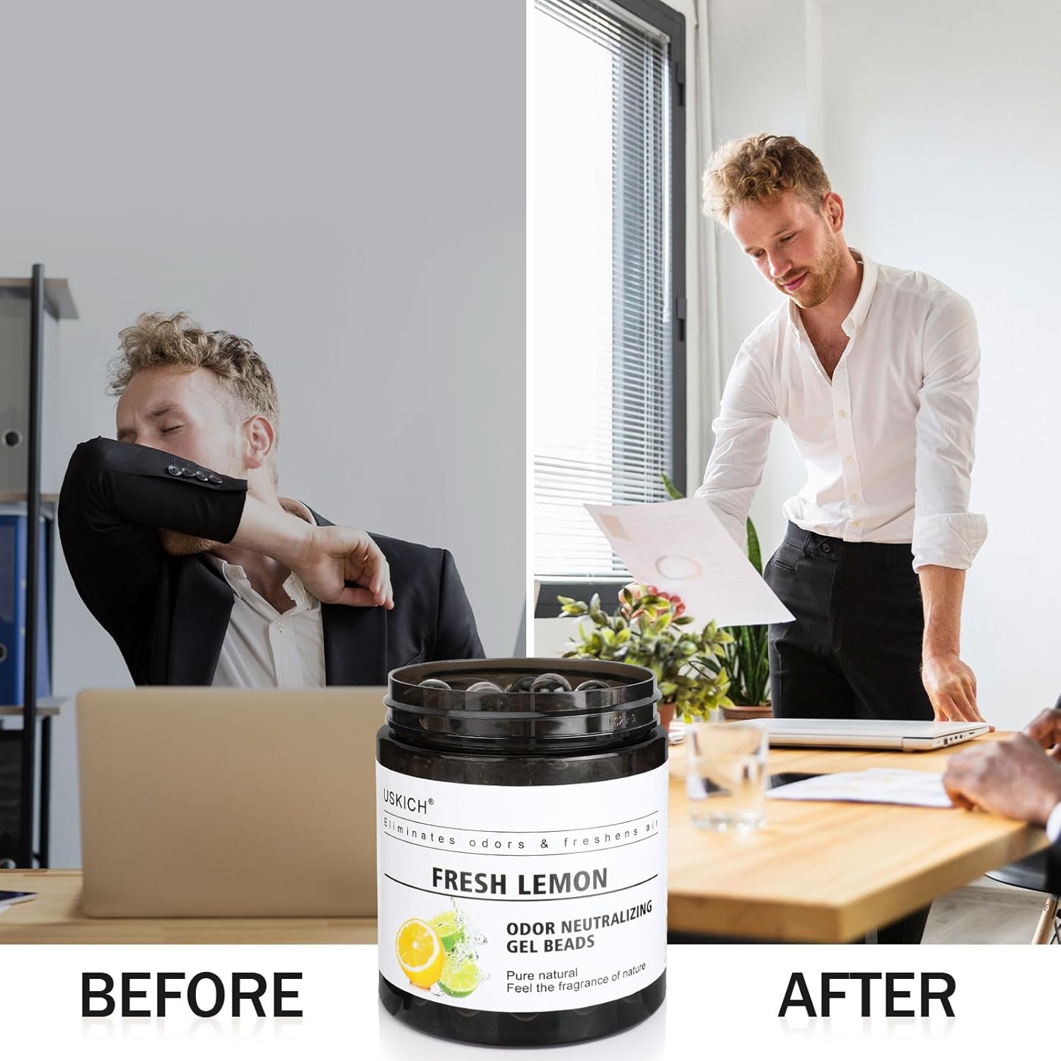 - Safe and Efficient Formula:Each Odor Eliminator Gel Bead contains 7.1 Ounces of product. The products are made with plant derived ingredients and formulated with a blend of essential oil based fragrances which adds a distinct and unforgettable aroma to any area you place and use the jar.