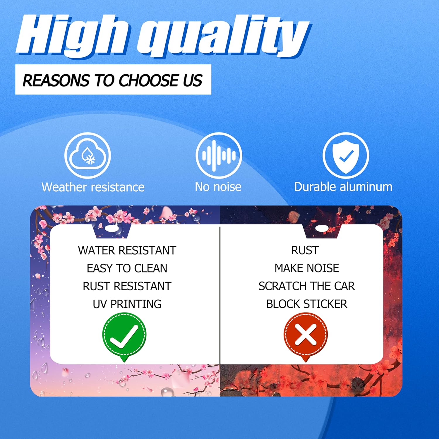 - Design:Use Advanced digital printing Protects license plate frames from Whether it's a car wash, heavy rain or hot weather, it still looks brand new,Let your car still be unique and stylish while driving on the road