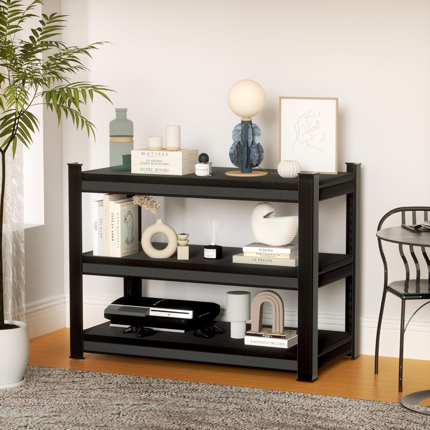 1350LBS Garage Storage Shelves Heavy Duty, 40" W x 16" D x 36" H,3-Tier Garage Shelving Heavy Duty, Industrial Metal Shelving Units for Basement,Fish Tank,Black