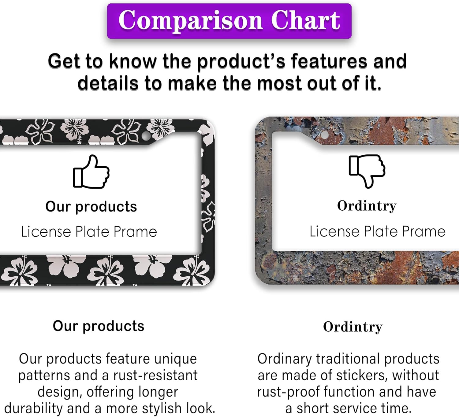 - ALUMINUM FRAME: This License Plate Frame is crafted from high-quality aluminum that is resistant to corrosion, rust, and harsh weather conditions. Its rugged reliability design ensures a long lifespan, making it capable of withstanding car washes and extreme weather, providing you with a reliable and stylish solution for your vehicle.