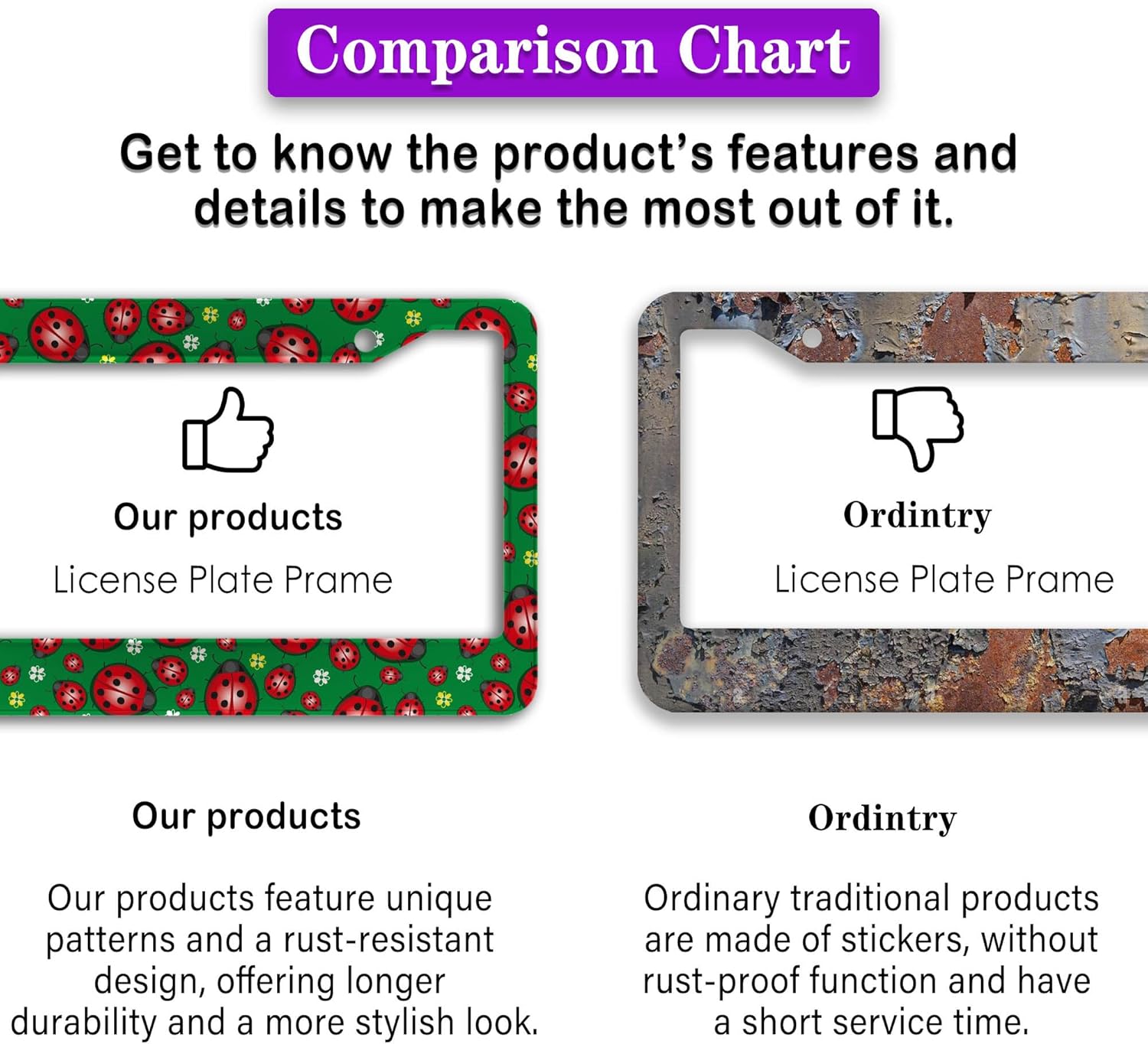 License Plate Frame Red Green License Plate Protector Cute Ladybug and Flowers Universal Aluminum Car Accessory 2 Pack with Screw Covers Set