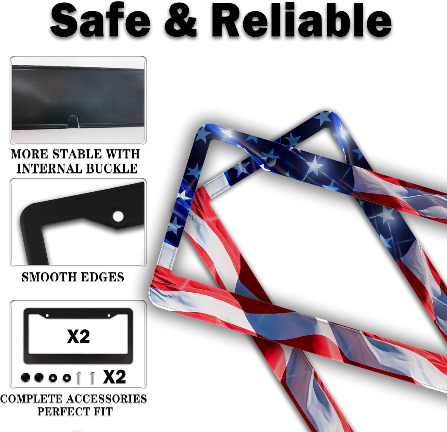 - ALUMINUM FRAME: This License Plate Frame is crafted from high-quality aluminum that is resistant to corrosion, rust, and harsh weather conditions. Its rugged reliability design ensures a long lifespan, making it capable of withstanding car washes and extreme weather, providing you with a reliable and stylish solution for your vehicle.