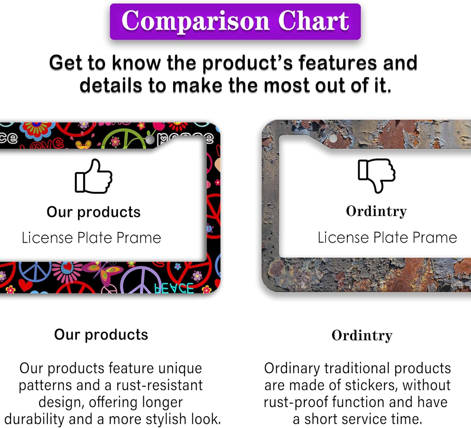 - FUNNY DESIGN: Featuring a unique and customized design, this license plate frame creates an eye-catching and bold statement for your vehicle. Not only does it add a touch of personality to your car, but it also makes for a great holiday gift, souvenir, or decorative piece for family, friends, and colleagues. Elevate your vehicle's style while sharing a laugh!