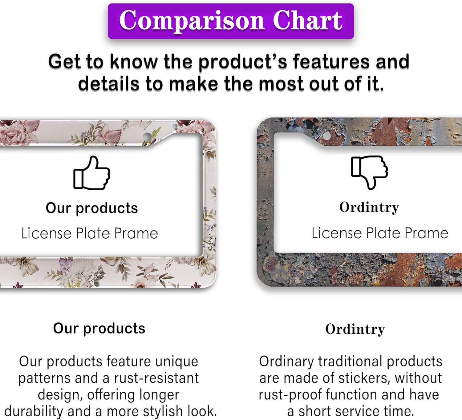 - ALUMINUM FRAME: This License Plate Frame is crafted from high-quality aluminum that is resistant to corrosion, rust, and harsh weather conditions. Its rugged reliability design ensures a long lifespan, making it capable of withstanding car washes and extreme weather, providing you with a reliable and stylish solution for your vehicle.
