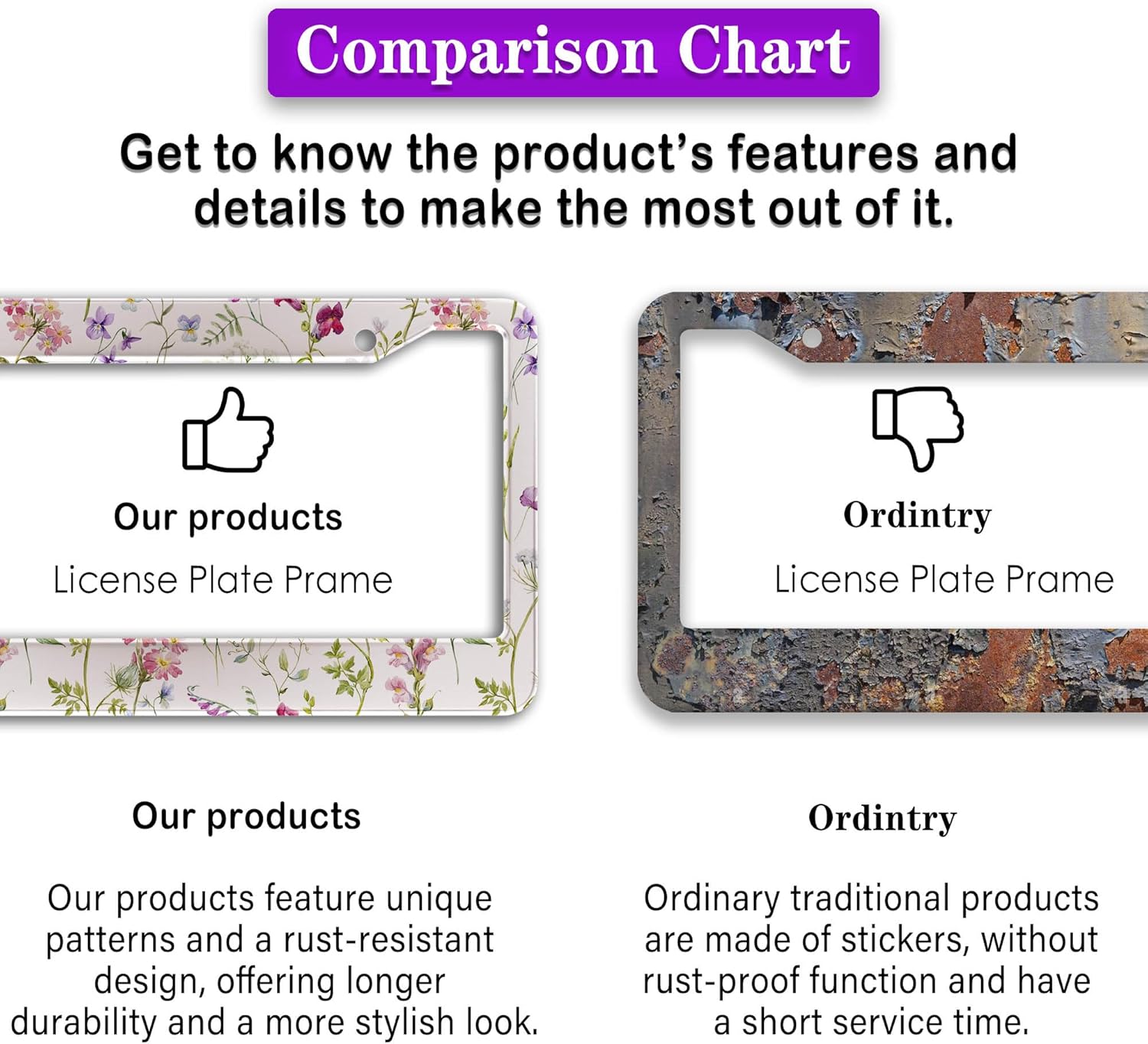 - ALUMINUM FRAME: This License Plate Frame is crafted from high-quality aluminum that is resistant to corrosion, rust, and harsh weather conditions. Its rugged reliability design ensures a long lifespan, making it capable of withstanding car washes and extreme weather, providing you with a reliable and stylish solution for your vehicle.