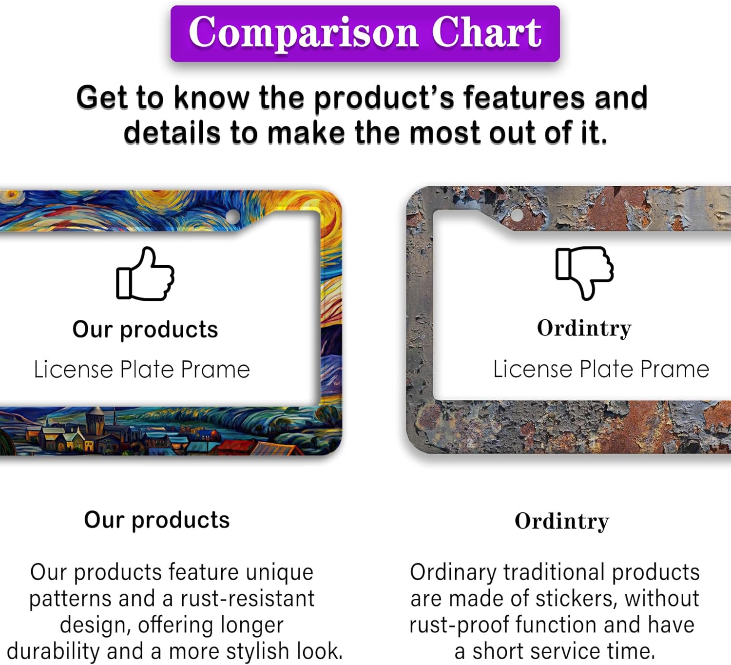 License Plate Frame Multicolor License Plate Holder The Starry Night Universal Aluminum Car Accessory 2 Pack with Screw Covers Set