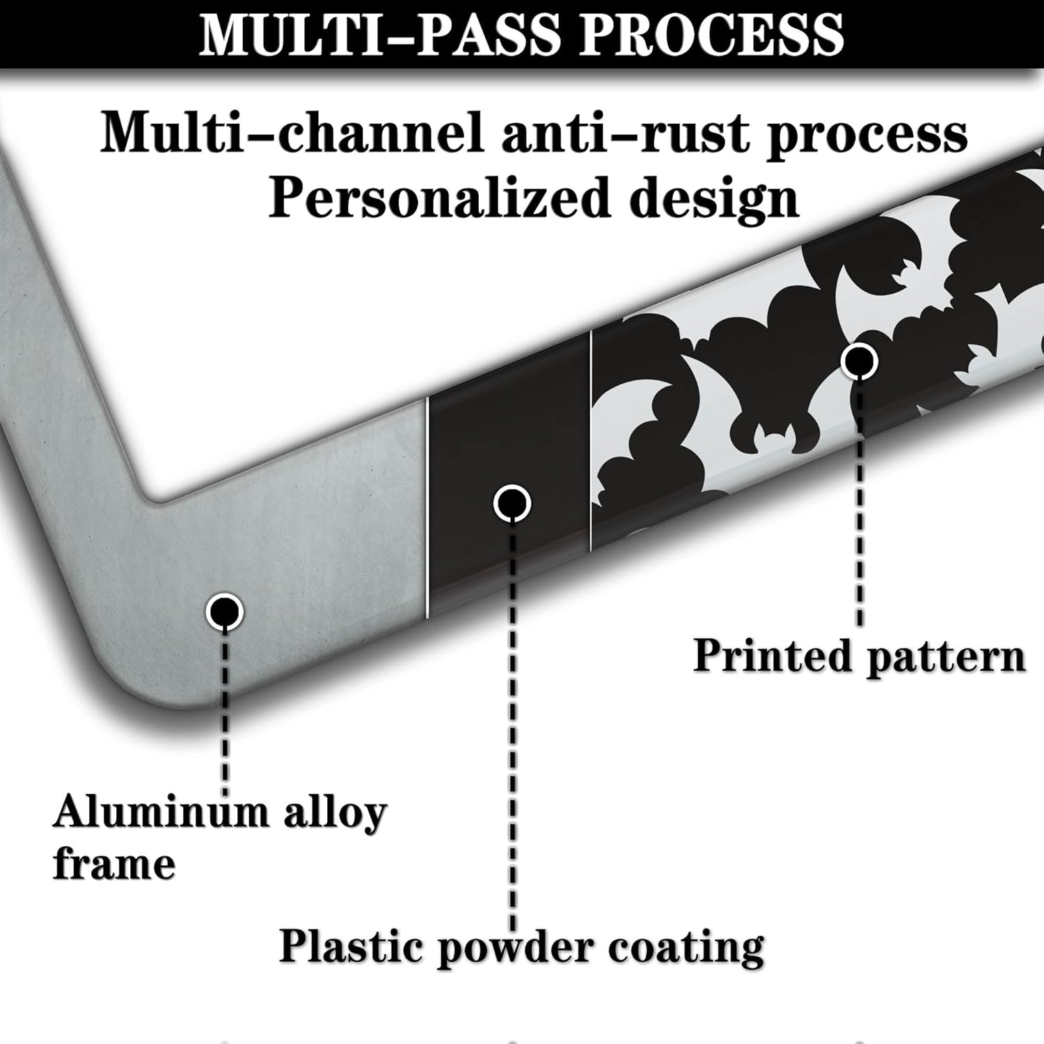 License Plate Cover for Women Black and White License Plate Frames for Men Dense Bats Aluminum Metal Car Accessory 2 Pack with Screw Covers Set