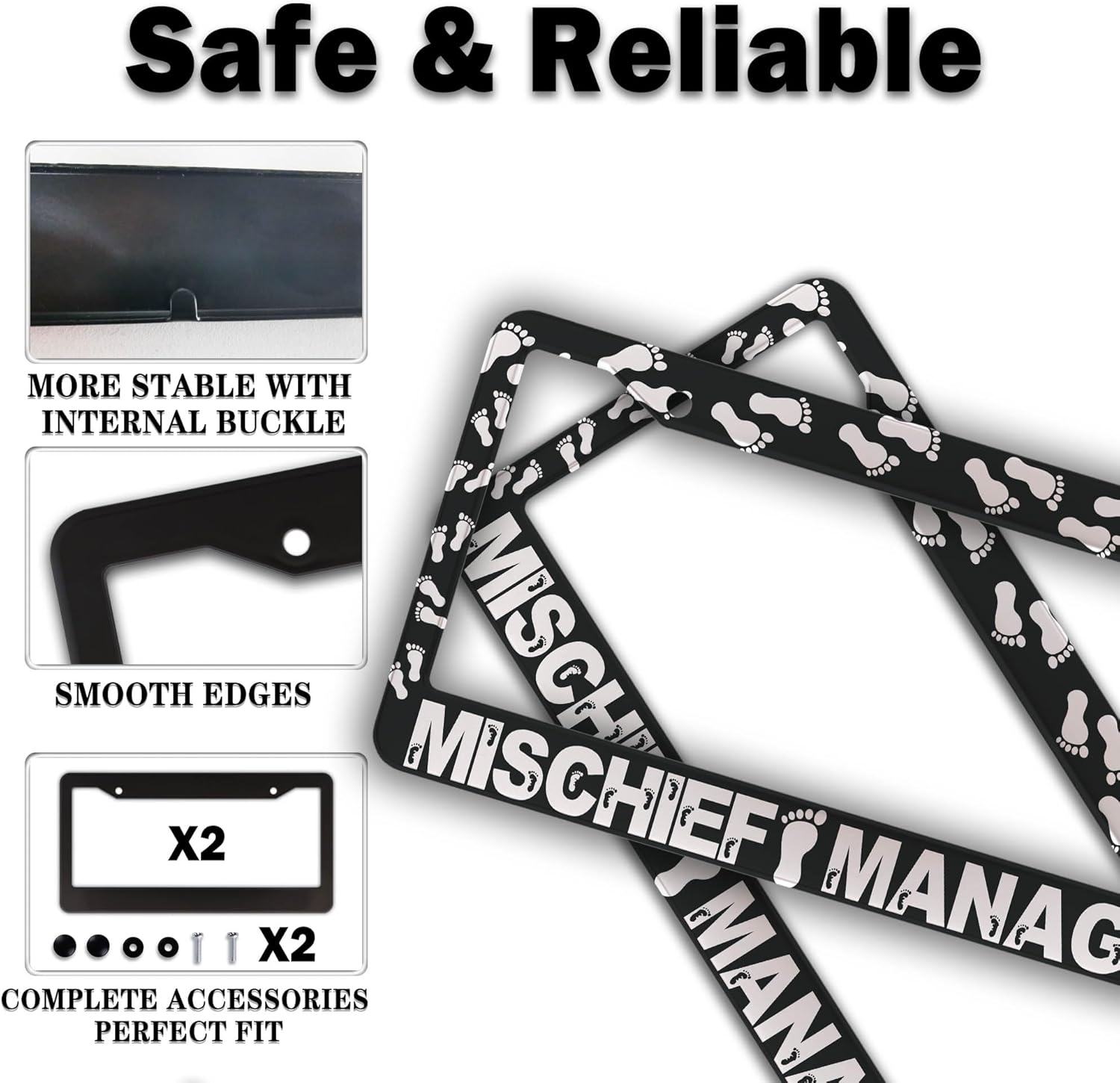 Automotive Exterior Accessories Black and White License Plate Frames Mischief Managed Universal Aluminum Car Accessory 2 Pack with Screw Covers Set