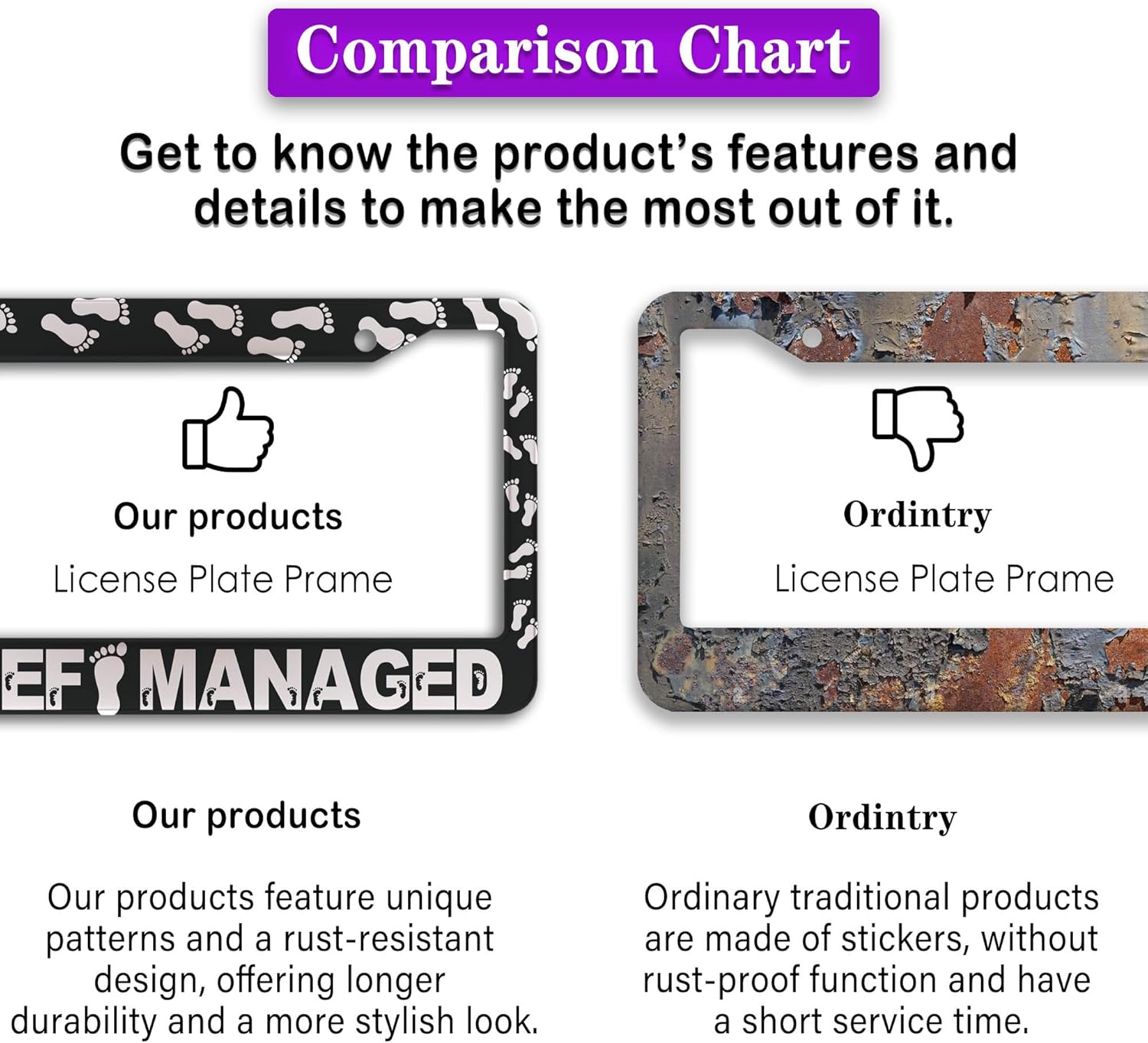 - FUNNY DESIGN: Featuring a unique and customized design, this license plate frame creates an eye-catching and bold statement for your vehicle. Not only does it add a touch of personality to your car, but it also makes for a great holiday gift, souvenir, or decorative piece for family, friends, and colleagues. Elevate your vehicle's style while sharing a laugh!