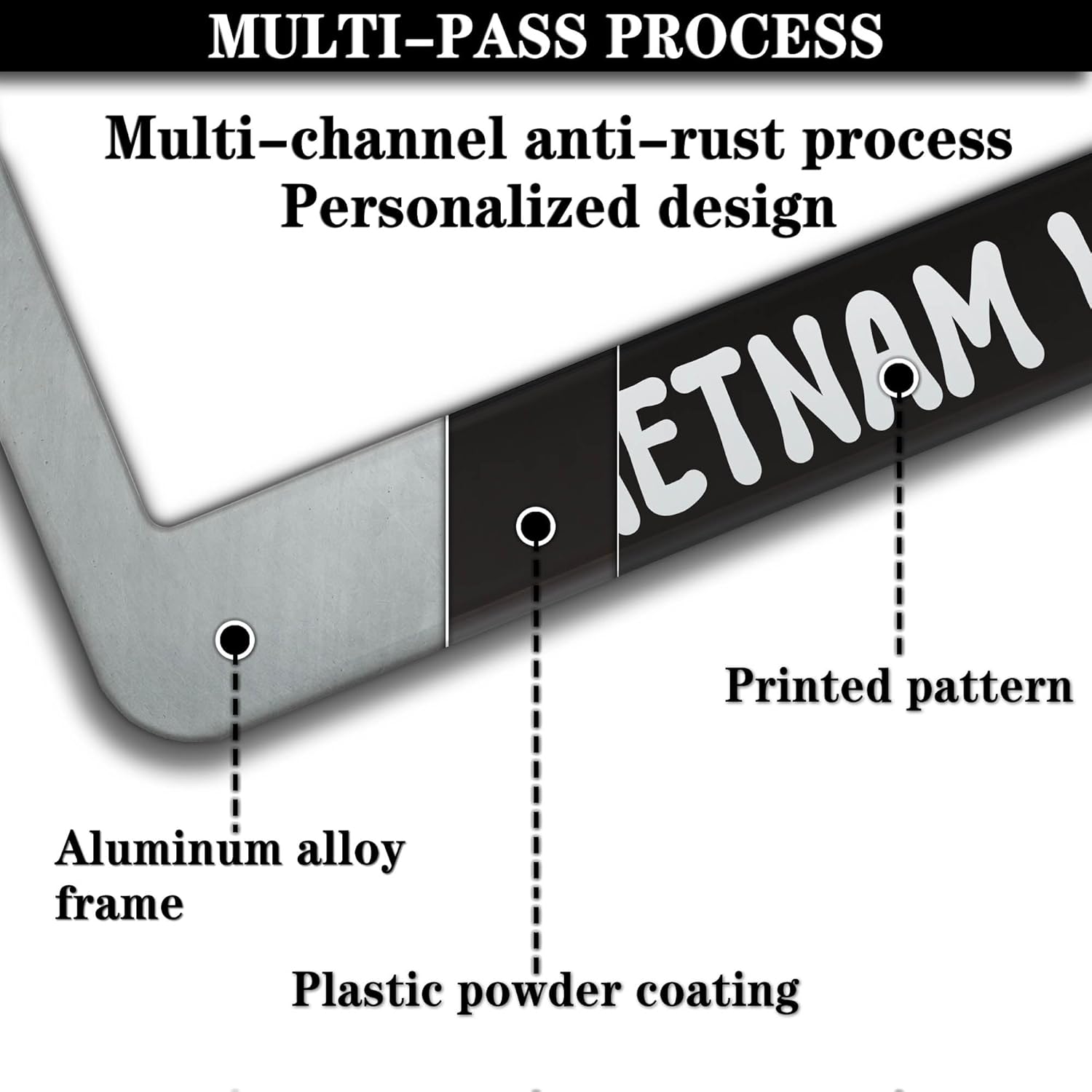 License Plate Frames Black and White License Plate Covers Disabled Vietnam Veteran Universal Aluminum Car Accessory 2 Pack with Screw Covers Set