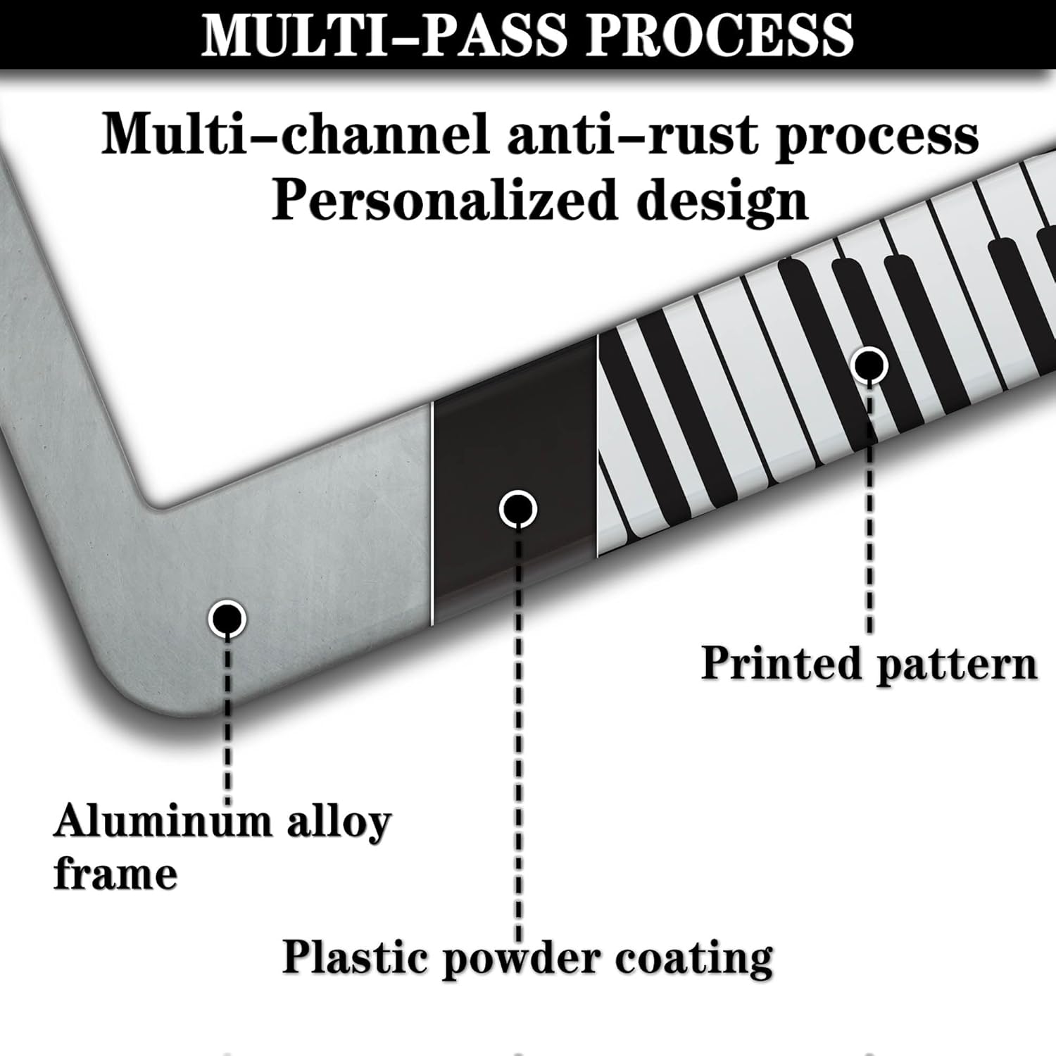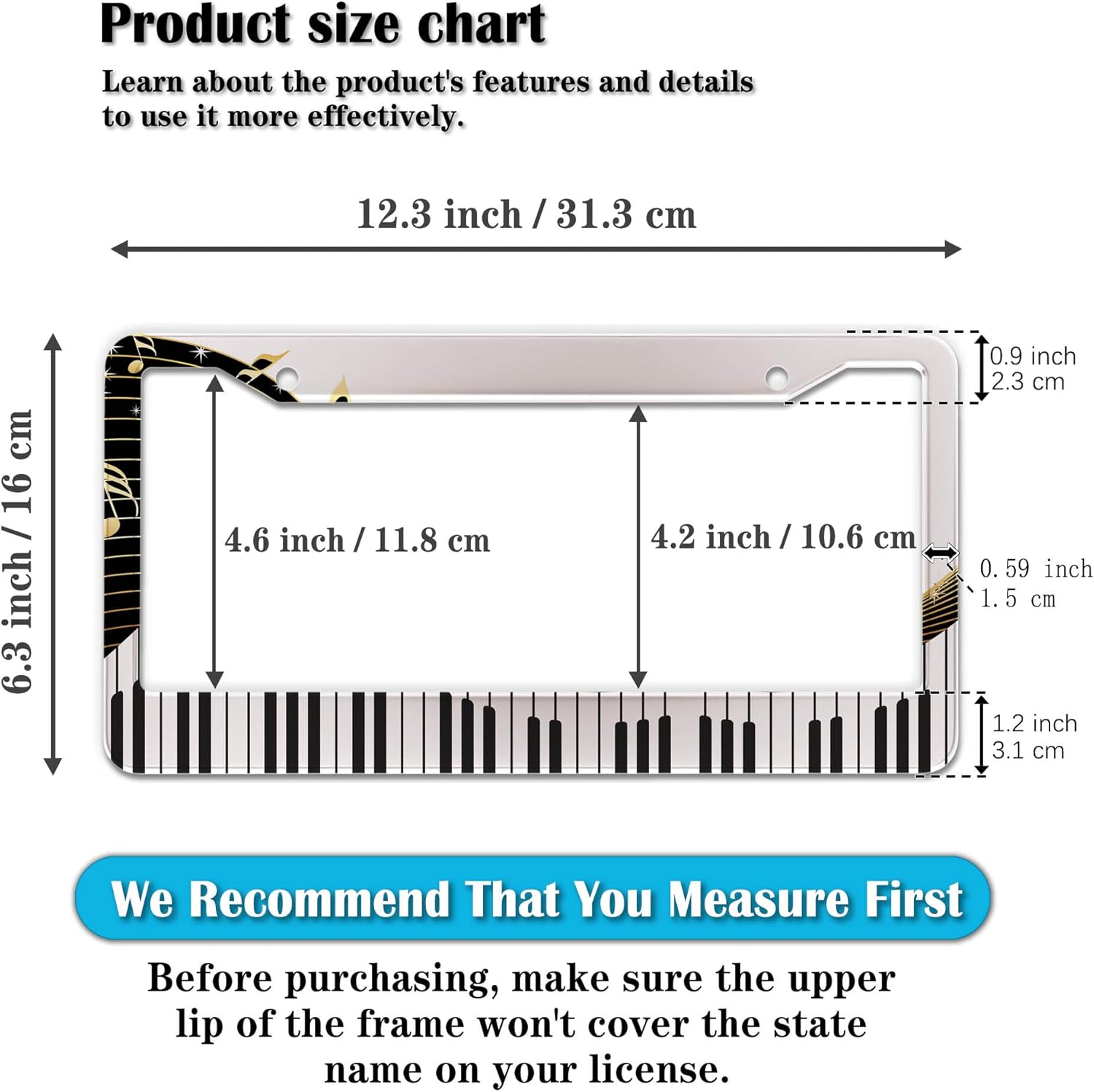 License Plate Bracket Black and White License Plate Frames Beautiful Piano Keys Music Notes Aluminum Metal Car Accessory 2 Pack with Screw Covers Set
