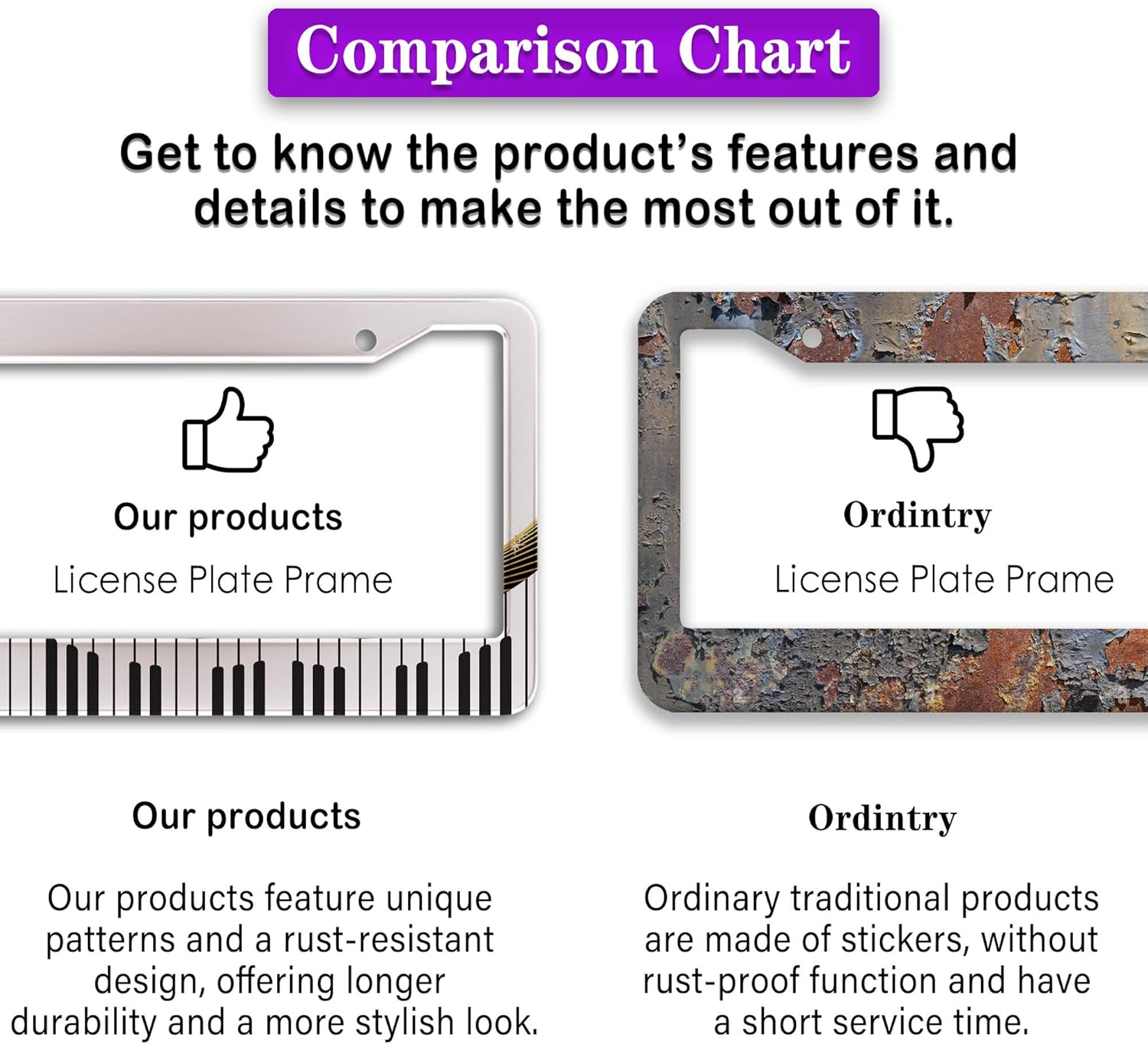 - ALUMINUM FRAME: This License Plate Frame is crafted from high-quality aluminum that is resistant to corrosion, rust, and harsh weather conditions. Its rugged reliability design ensures a long lifespan, making it capable of withstanding car washes and extreme weather, providing you with a reliable and stylish solution for your vehicle.