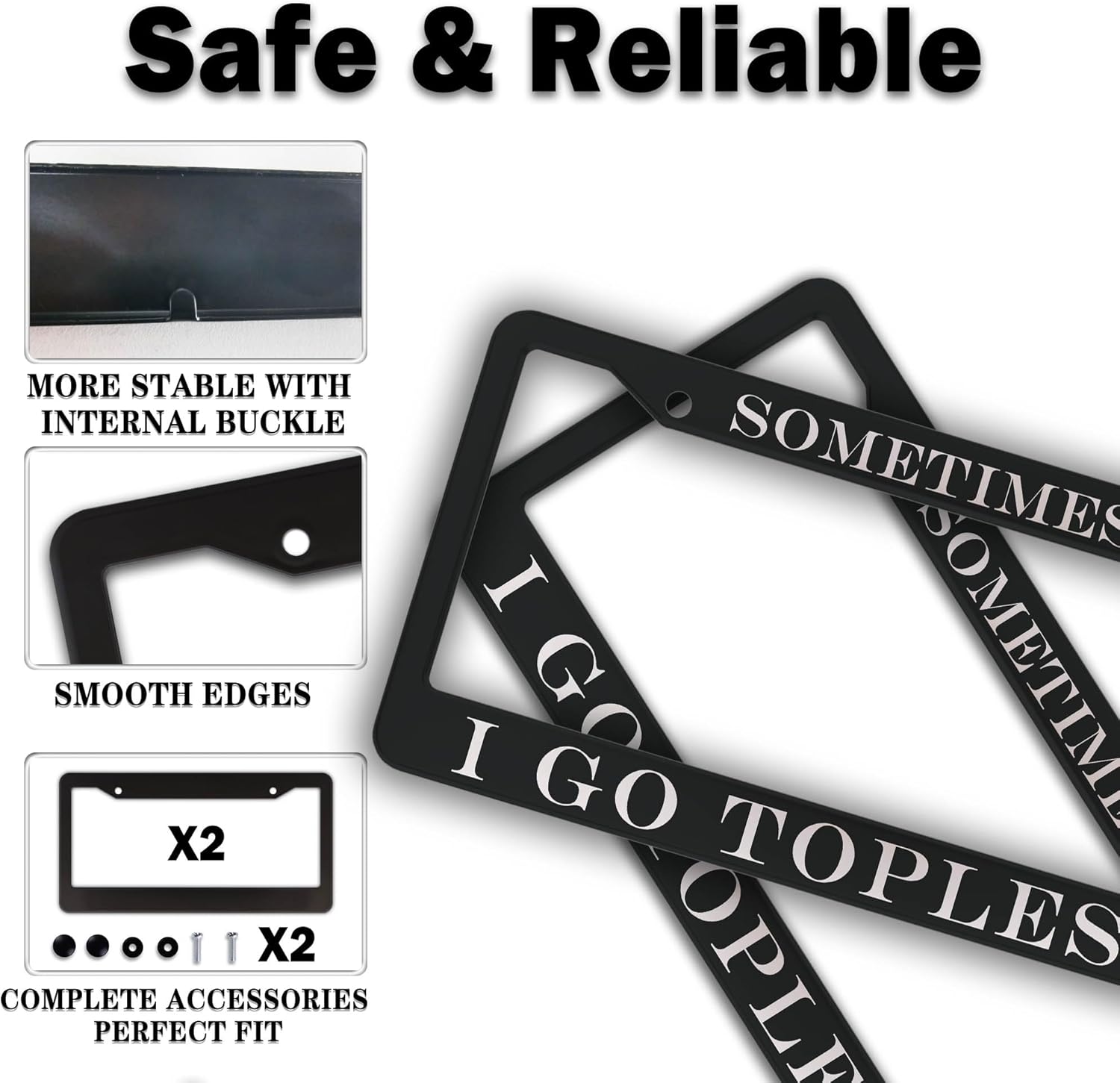 Front License Plate Bracket Black and White License Plate Frames Sometimes I Go Topless Aluminum Metal Car Accessory 2 Pack with Screw Covers Set