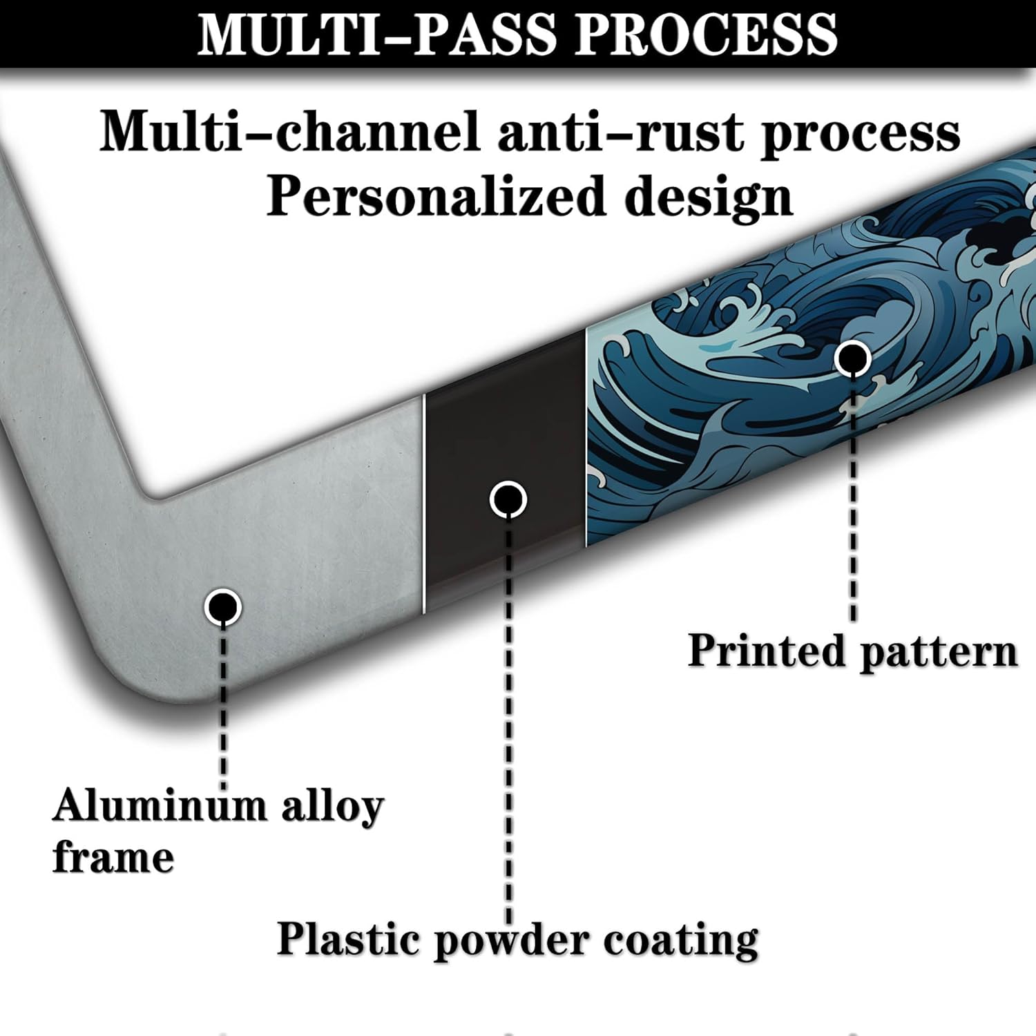 License Plate Frames for Men Multicolor License Plate Frame Holder for Women Ocean Waves Aluminum Metal Car Accessory 2 Pack with Screw Covers Set