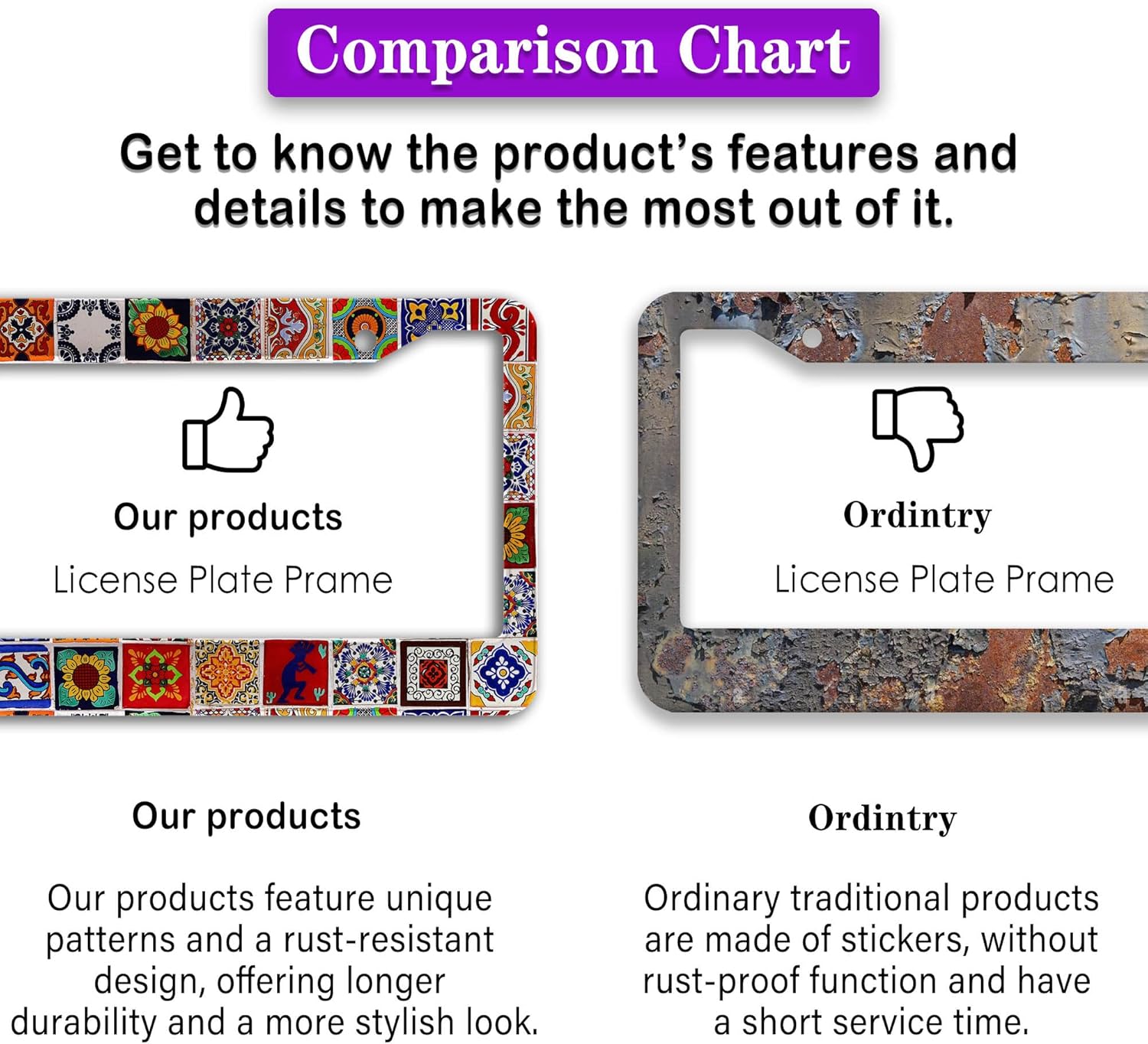 License Plate Protector for Women Multicolor License Plate Frames for Men Mexican Tiles Universal Aluminum Car Accessory 2 Pack with Screw Covers Set