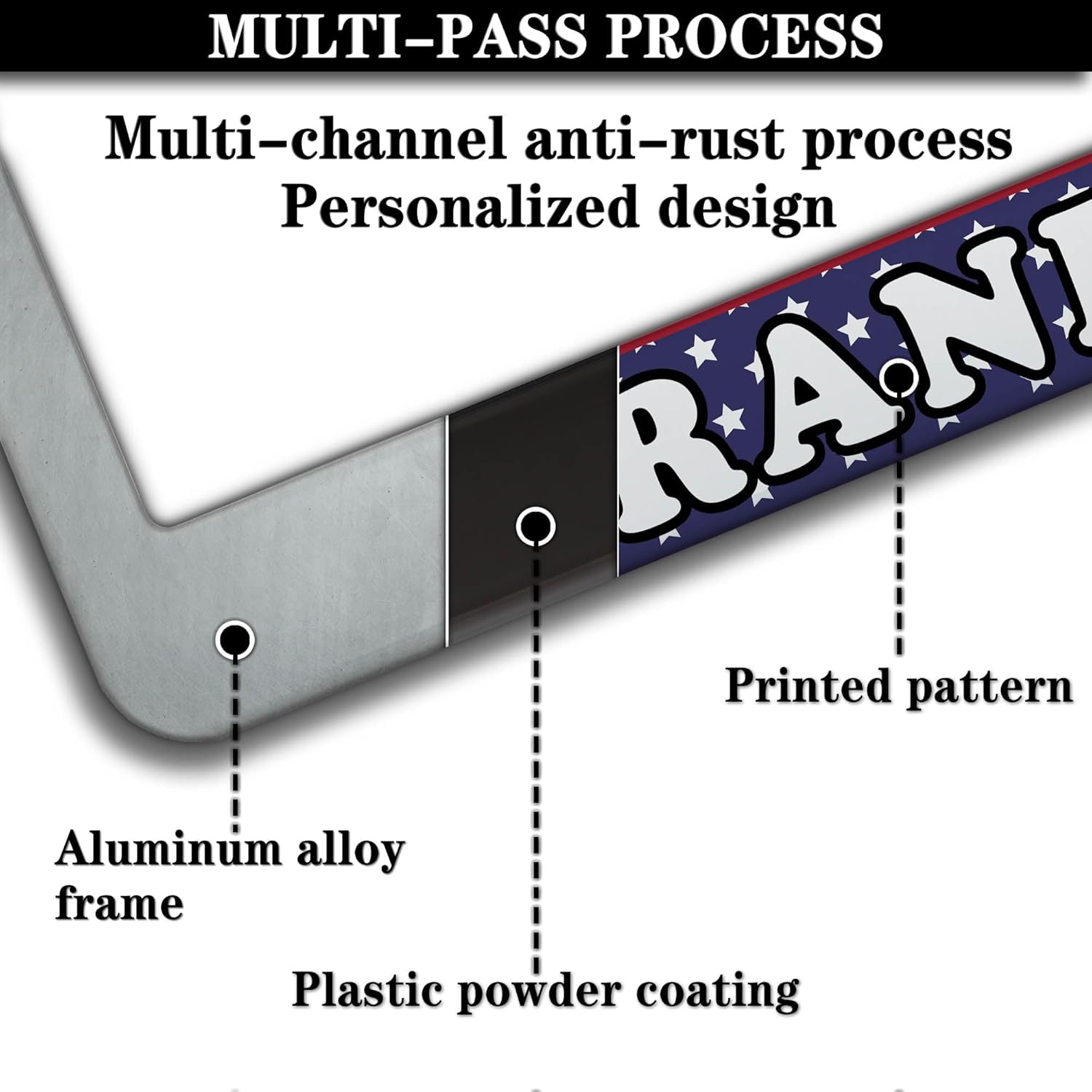 - ALUMINUM FRAME: This License Plate Frame is crafted from high-quality aluminum that is resistant to corrosion, rust, and harsh weather conditions. Its rugged reliability design ensures a long lifespan, making it capable of withstanding car washes and extreme weather, providing you with a reliable and stylish solution for your vehicle.