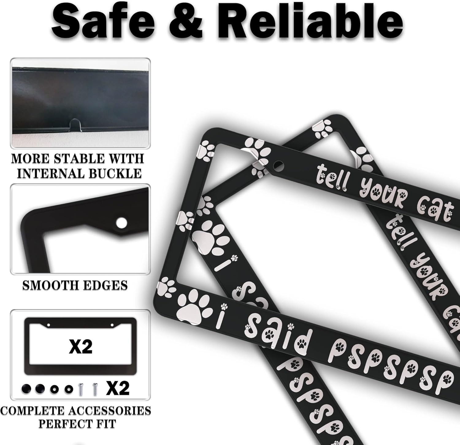 License Plate Frames Black and White License Plate Cover Tell Your Cat I Said Pspspsps Aluminum Metal Car Accessory 2 Pack with Screw Covers Set