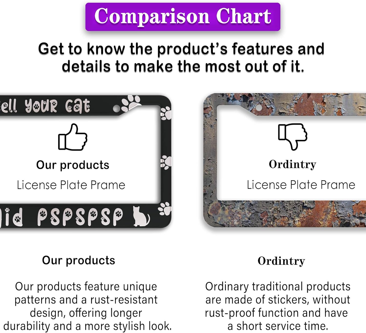 - FUNNY DESIGN: Featuring a unique and customized design, this license plate frame creates an eye-catching and bold statement for your vehicle. Not only does it add a touch of personality to your car, but it also makes for a great holiday gift, souvenir, or decorative piece for family, friends, and colleagues. Elevate your vehicle's style while sharing a laugh!