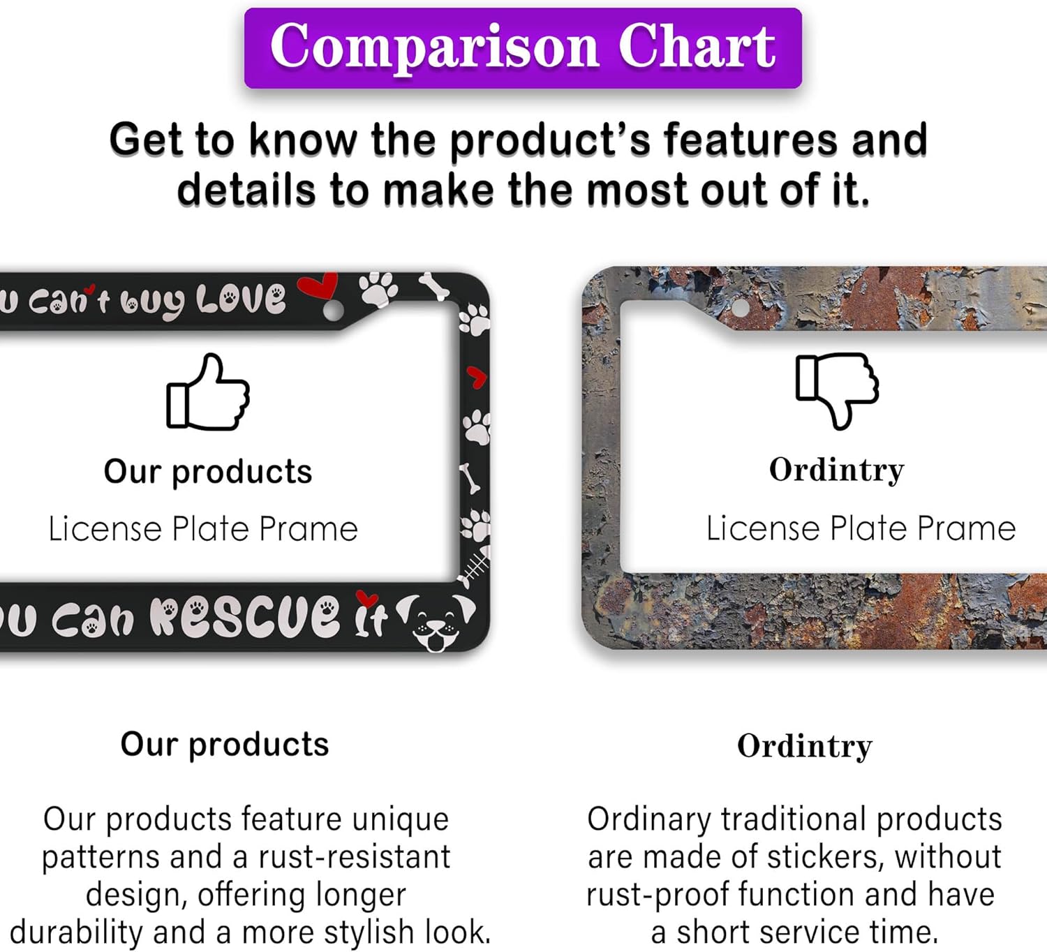License Plate Frame Black and White Front License Plate Bracket You Can’t Buy Love, but You Can Rescue It Aluminum Metal Car Accessory 2 Pack with Screw Covers Set