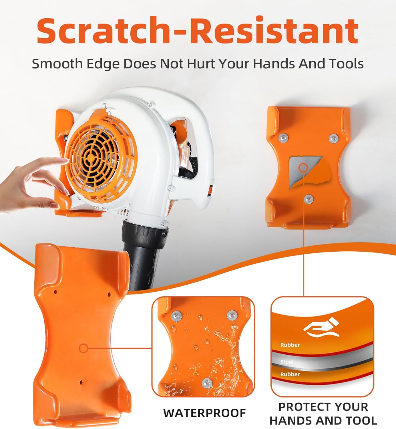 - 【Ruber coating】 The leaf blower mount has an orange rubber protective coating (will not damage leaf blower), which can prevent rust.