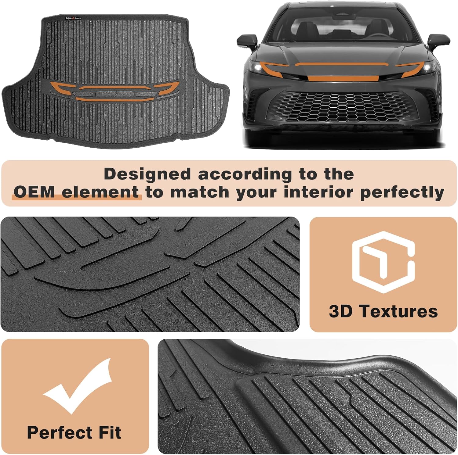 TripleAliner Trunk Floor Mat All Weather Liners Compatible with 2025 Toyota Camry (Include Hybrid) Accessories TPE Carpets Trunk Liner TPE Custom Fit Protection Car Mats