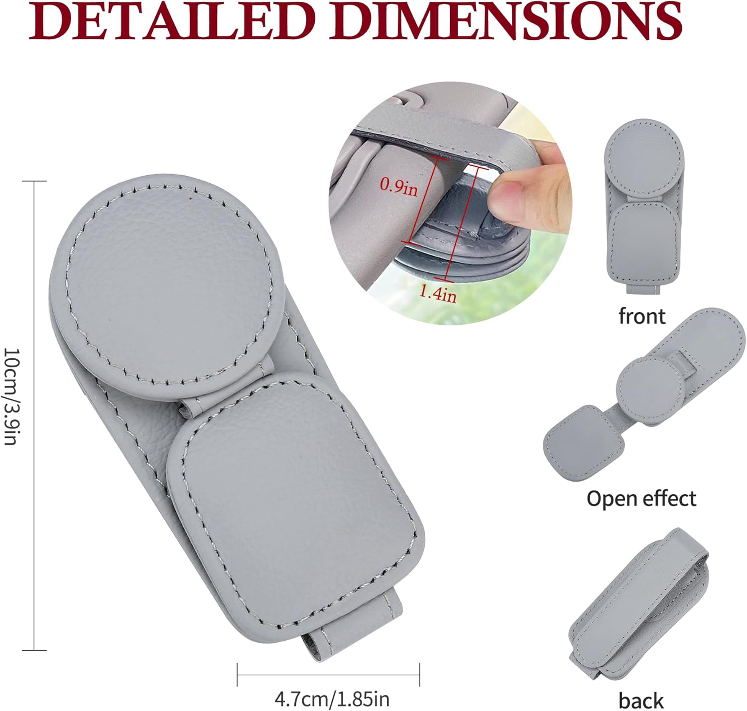 KIWEN 2 Pack Sunglasses Holder for Car Visor, Magnetic Leather Sunglass Eyeglass Hanger Clip for Car Sun Visor Accessories (2, Gray)