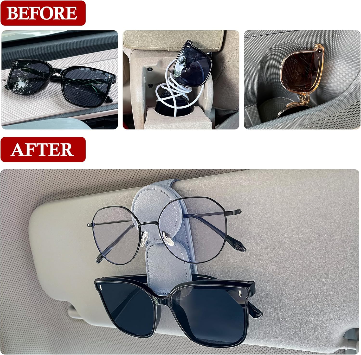 - No Interference with Driving Vision: Simply snap the car glasses holder onto the visor in place for quick installation; it fits snugly into car visor without taking up space or obstructing your view of the road, improving driving safety and comfort