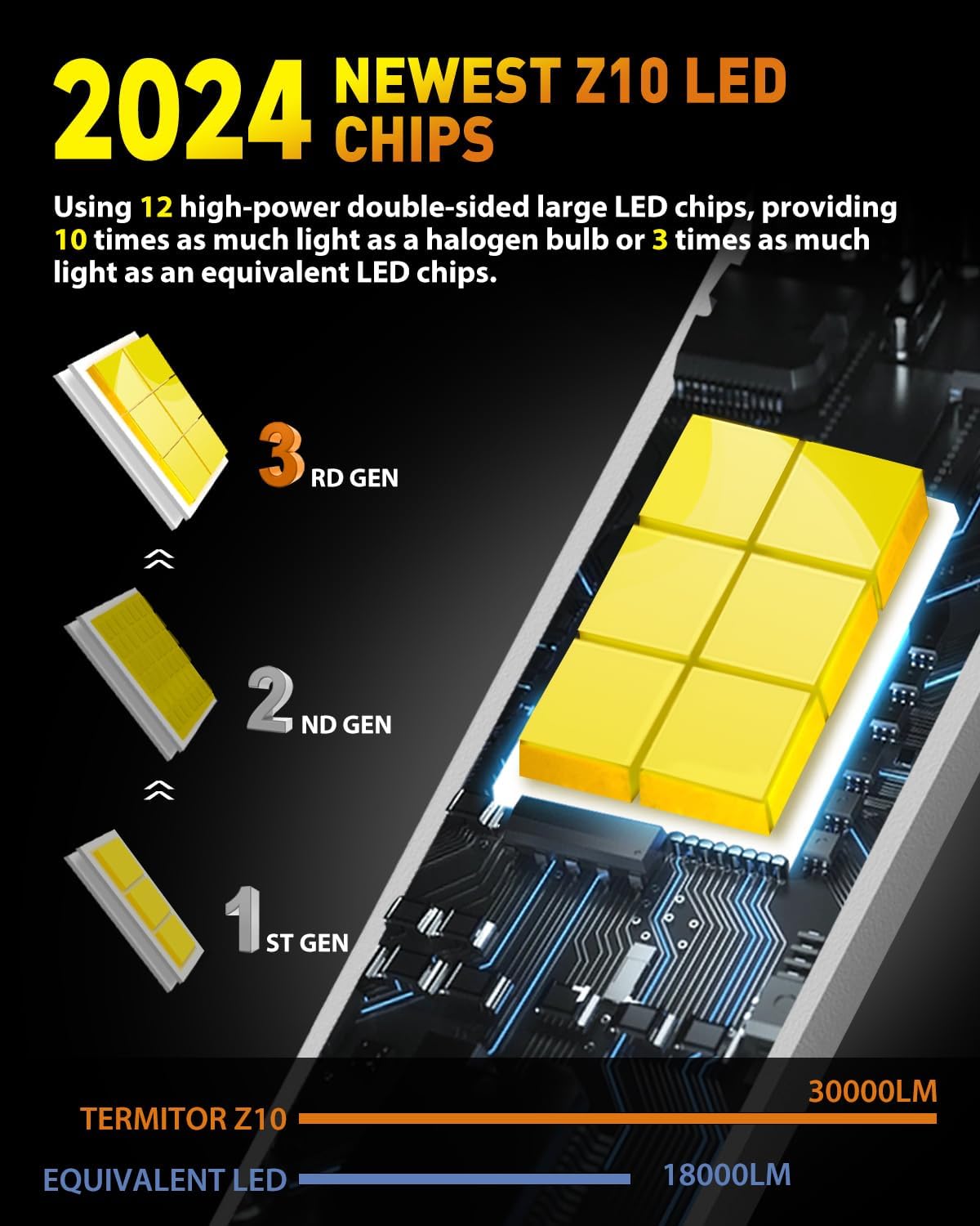 - 【800% More Brightness for Superior Night Driving】Upgrade your night driving with our ultra-bright light bulbs, featuring 12 high-power chips per bulb, delivering a remarkable 22,000 lumens per set. With the latest Z10 technology, these lights offer unparalleled brightness and reliability, transforming your nighttime visibility.