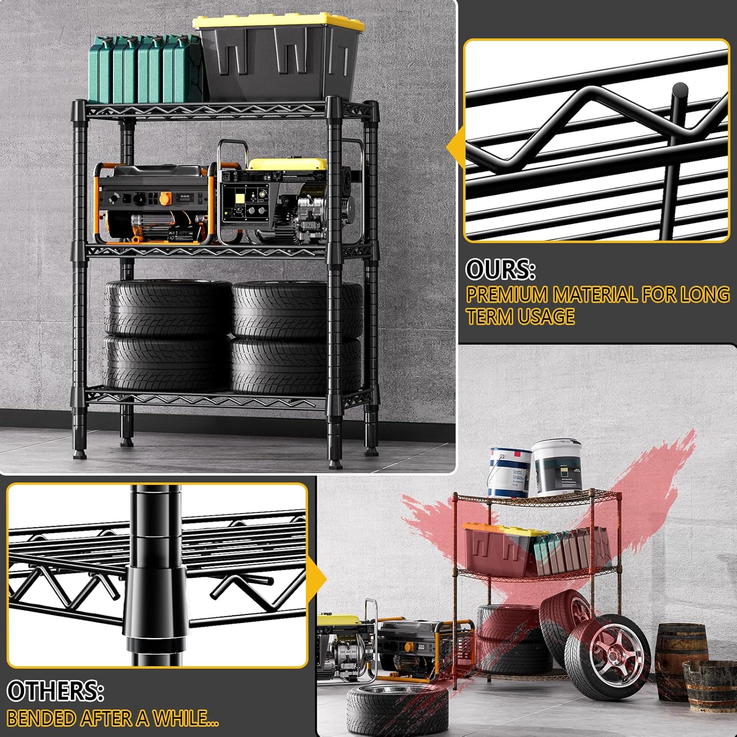 750 lbs 3 Tier Shelf Metal Storage Shelves Wire Rack Closet Organizers for Garage Kitchen Bathroom Laundry Black 11.8" D x 25.6" W x 31.5" H