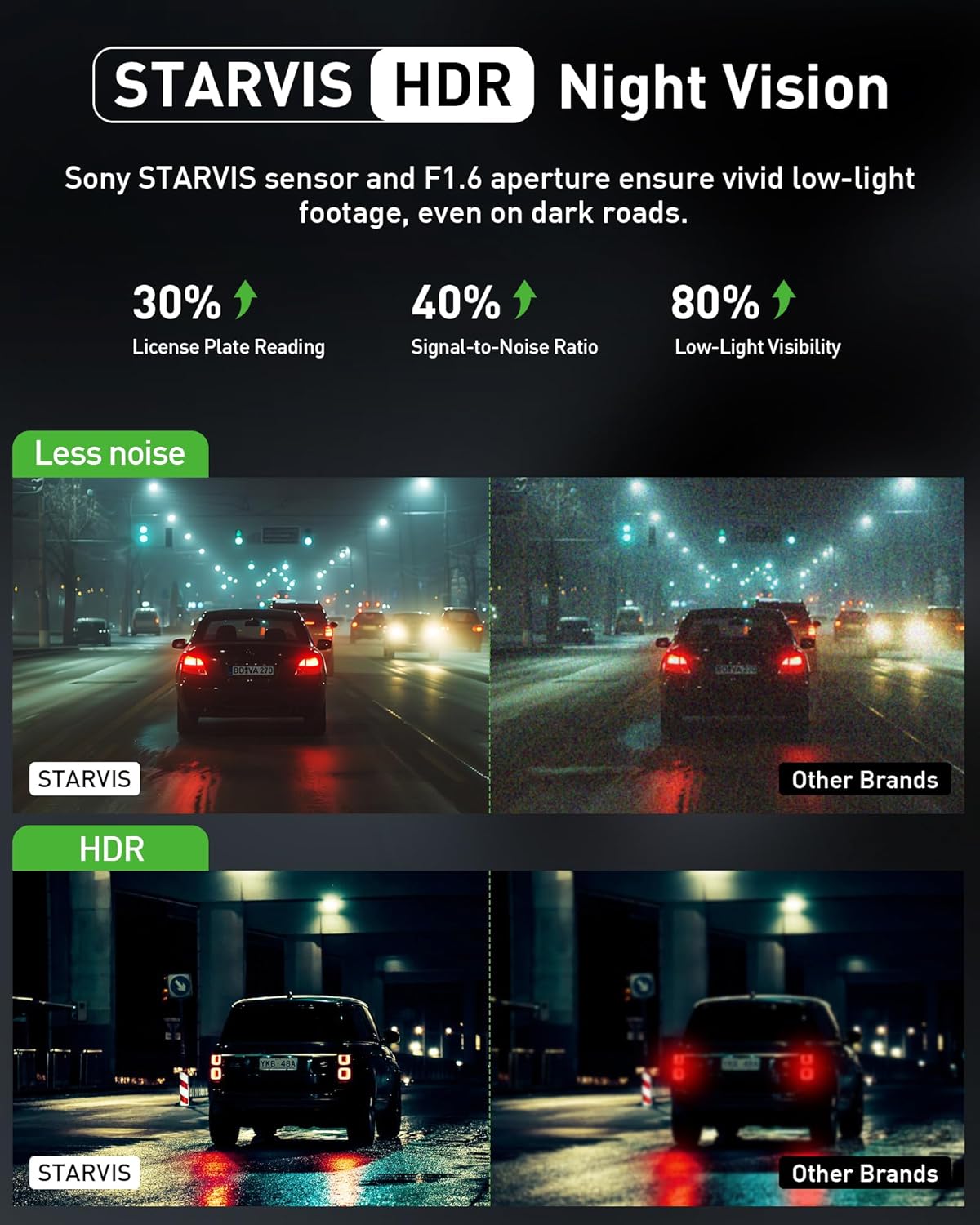 - 【STARVIS 4K Night Vision + True HDR – See Clearly in Total Darkness】 The car dashcam equipped with a STARVIS image sensor which automatically balance exposure and light/dark spots, it captures much more details in ultra-low light during night time and even in the dark road