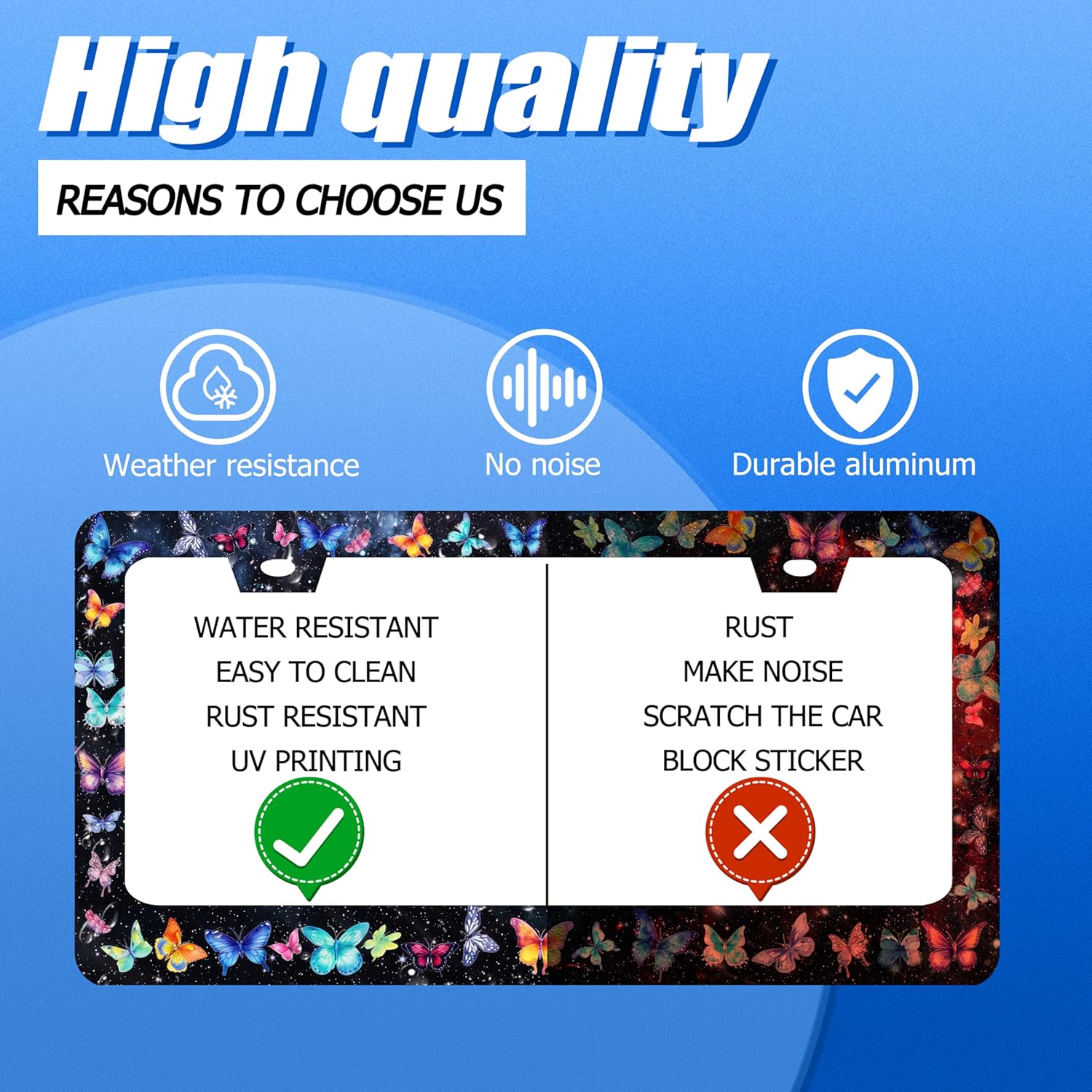 Beautiful Butterfly License Plate Frame Watercolor License Plate Stainless Steel Colorful License Plate Holder Car Accessory with Screws Car Decoration 12.3" x 6.3" Fits Standard Vehicles Size