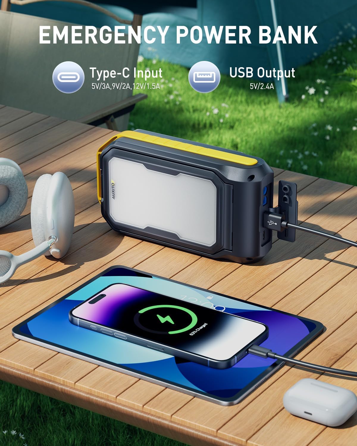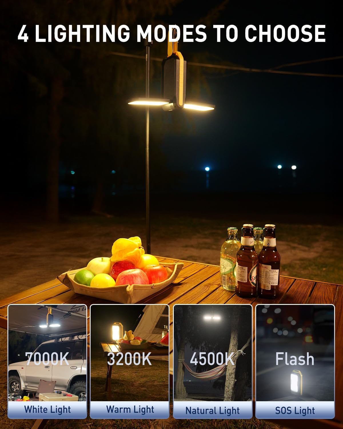 - ➤【Hangable Camping Light】Ultra-bright 4000 lumen LED dual panel light is angle adjustable to provide 360° illumination that lasts for 24 hours! With four lighting modes (cool white, warm yellow, yellow-white and strobe), works as camping light/work light/reading light