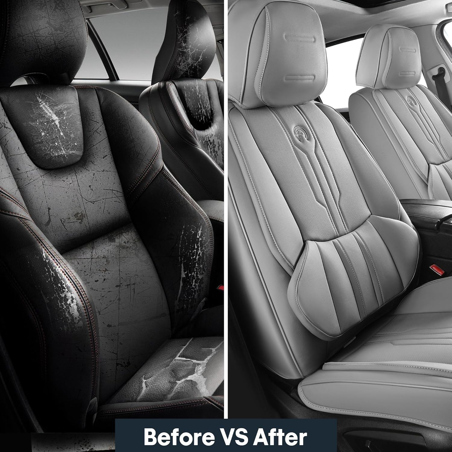 AOOG Front Seat Covers, Car Seat Covers Front Seats, Leather Seat Covers for Cars, Waterproof Seat Covers with Lumbar Support Universal Fit for Most Cars SUV Trucks(Front Pair, Grey)