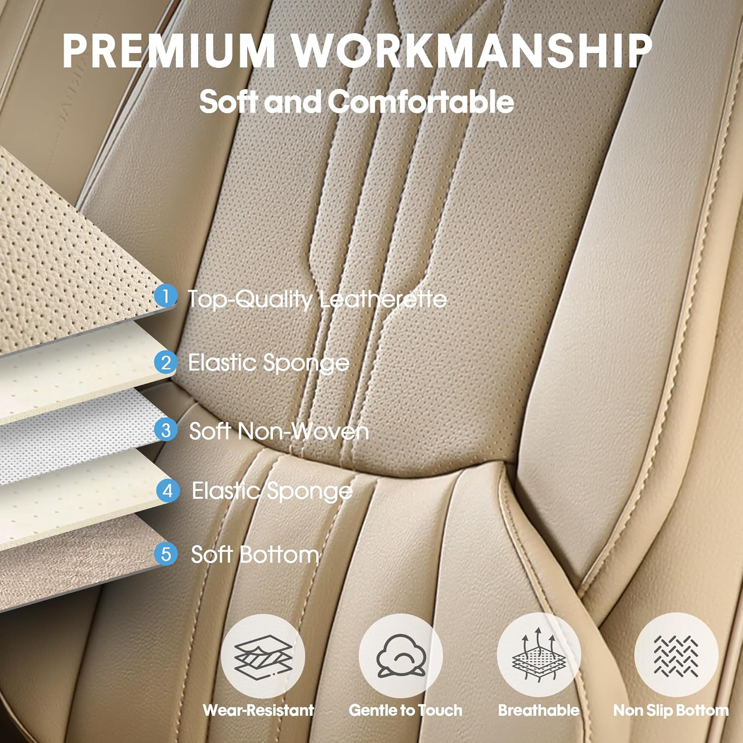 AOOG Car Seat Covers Full Set, Leather Seat Covers for Car, Waterproof Car Seat Protector with Lumbar Support, Automotive Seat Covers Universal Fit for Most Cars SUV Trucks (Full Set, Beige)