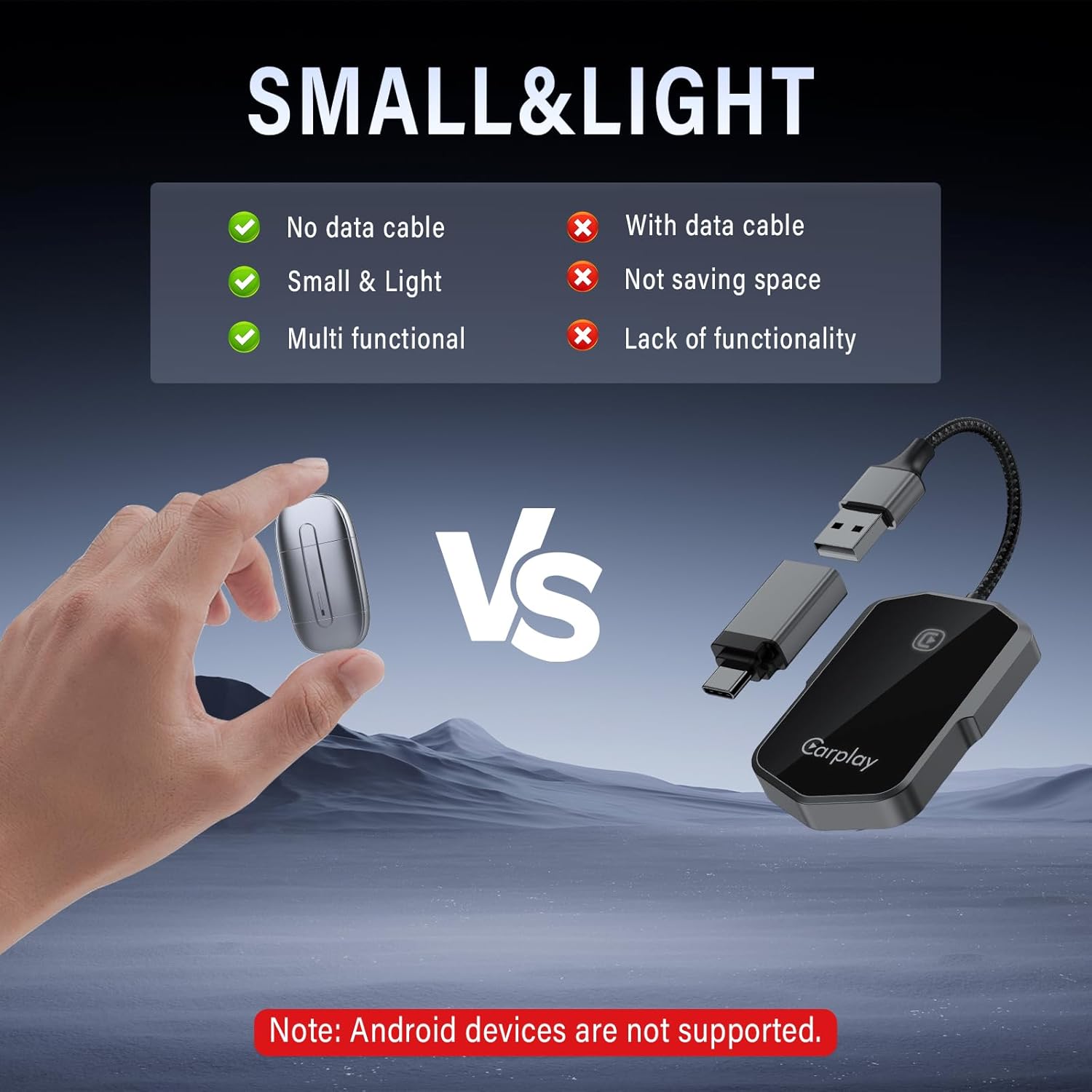 - 【Small and portable】 This wireless carplay adapter is the perfect companion for your vehicle! Its compact size and lightweight design make it easy to carry with you without taking up much space in your car