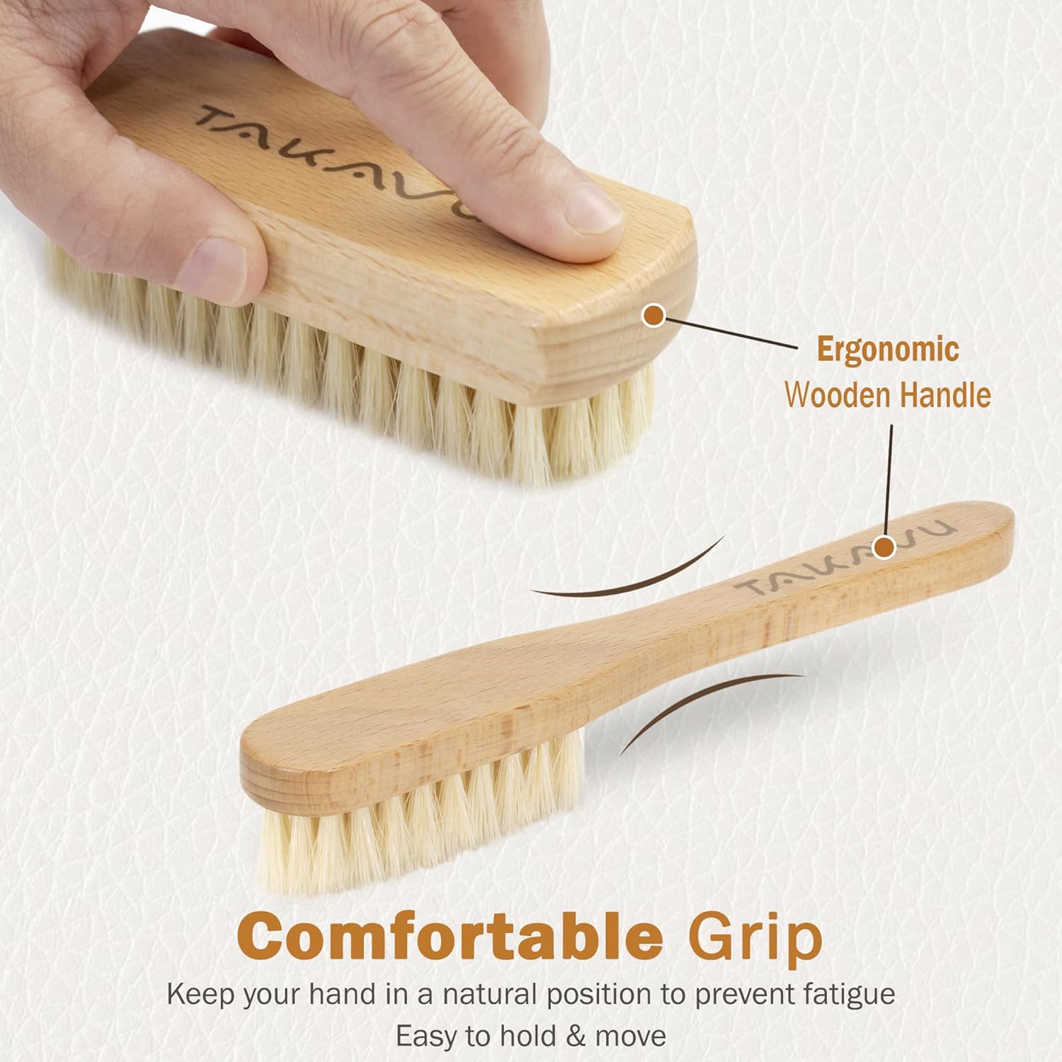 TAKAVU Leather & Upholstery Cleaning Brush Set, Pure White Boar Hair Bristle, to Clean Car Seats, Leather Sofas, for Alcantara, Interiors, Furniture, Boots, Shoes, Bags and More