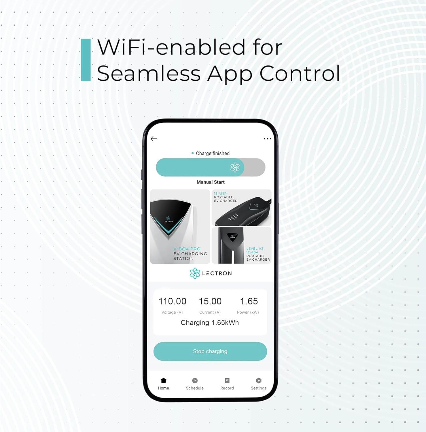 - WIFI & APP CONNECTIVITY - Monitor and control your EV charging remotely through the Lectron app. Stay updated on charging status and adjust the charging current with the touch of a button