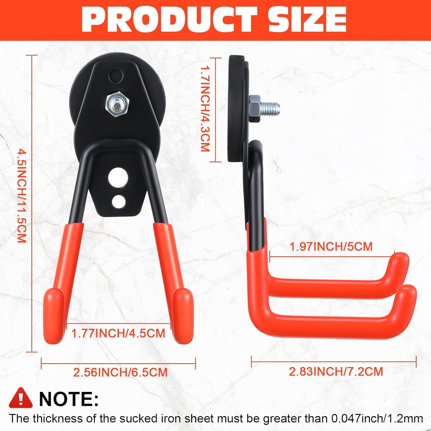 - Easy to Install: no need to use any tools, and the magnetic hooks will not break the surface; The orange magnetic hooks can be placed directly on the metal surface; Please note that the thickness of the sucked iron sheet must be thicker than 0.047 inch/ 1.2 mm; Or else the magnetic hook will slide off