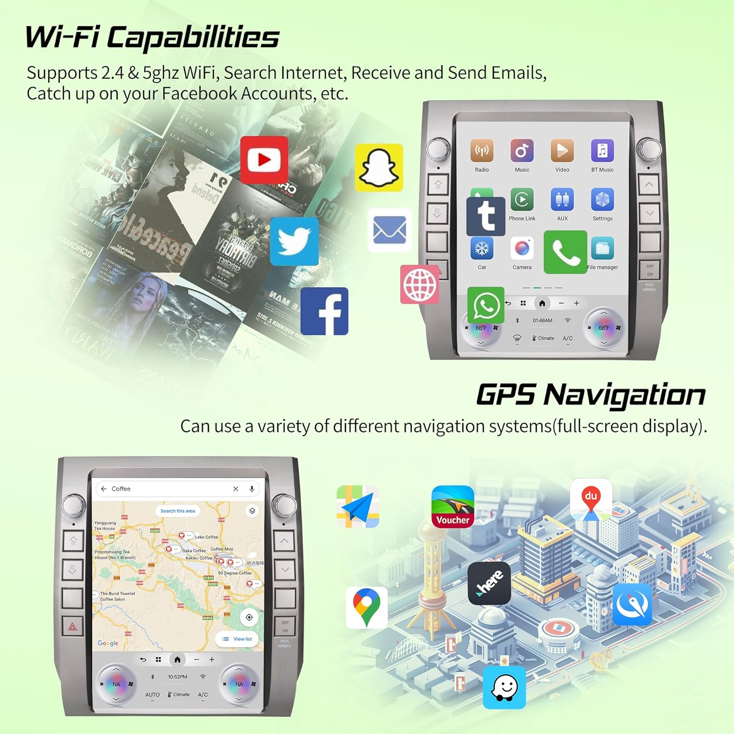 - 【𝐖𝐢𝐫𝐞𝐝/𝐖𝐢𝐫𝐞𝐥𝐞𝐬𝐬 𝐂𝐚𝐫𝐏𝐥𝐚𝐲 & 𝐀𝐧𝐝𝐫𝐨𝐢𝐝 𝐀𝐮𝐭𝐨】Citreal “Lite” version Tundra car radio now allows iPhone and Android users can use CarPlay or Android Auto WIRELESSLY to enjoy a seamless experience. Activate the CarPlay or Android Auto,use the power of your smartphone for additional features of each system. letting you make calls, send and receive texts, and get directions with Google or the receiver's display.