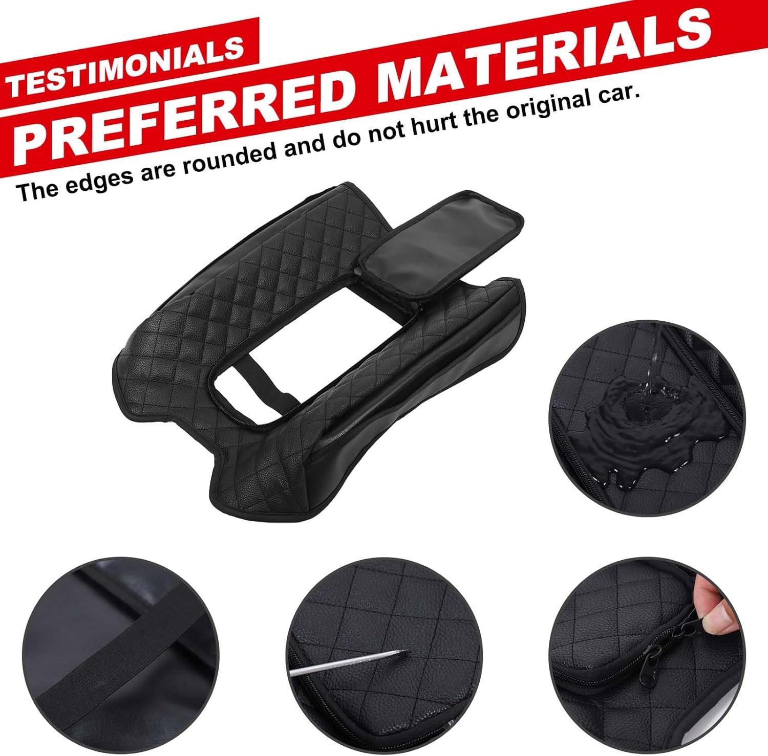 - 🚙Superior Quality Materials:This PU Leather Armrest Box Cover, is made of Superior quality PU soft leather material with precision cutting process. Impervious to water, strong adhesion, effectively prevent scratches, long service life.