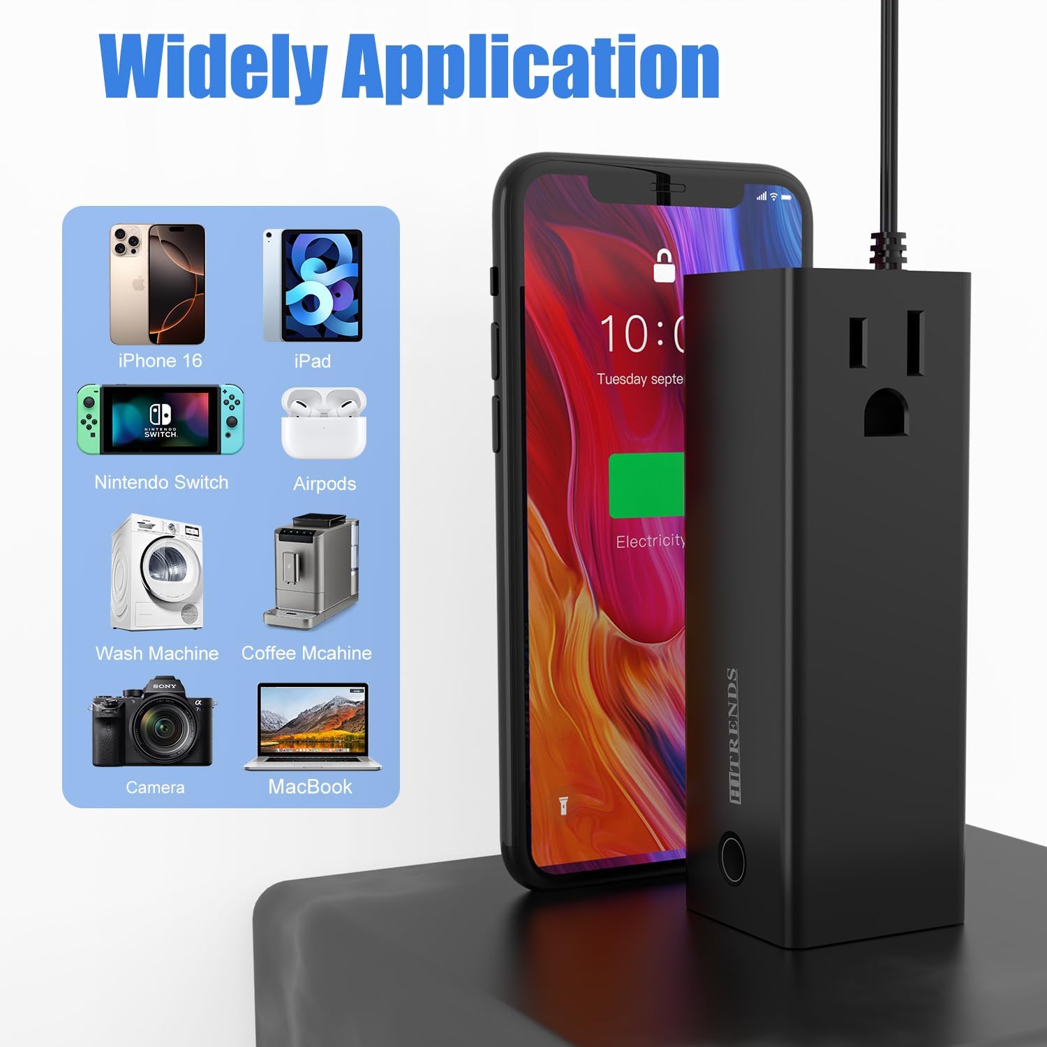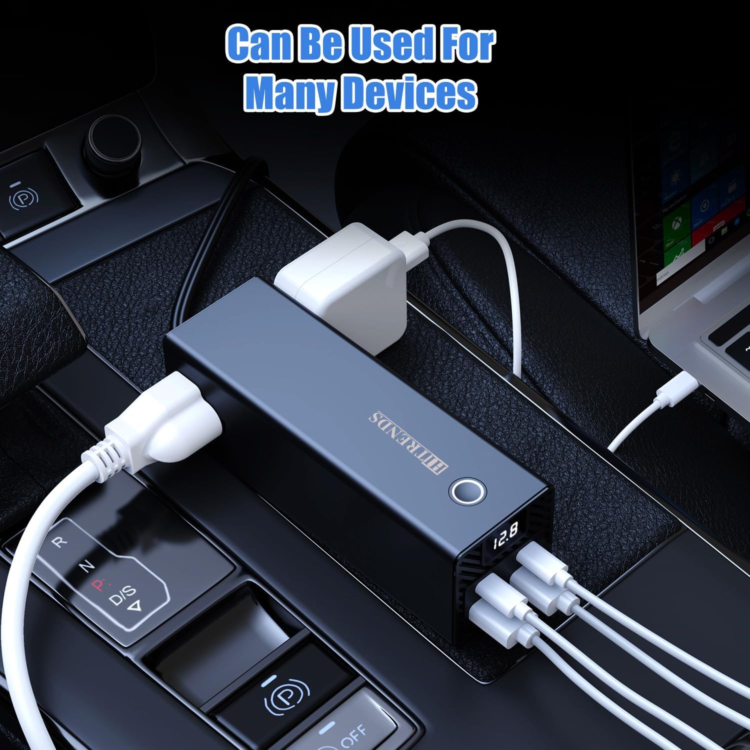 - 【300w Power Inverter】Perfect for long car trips, family vacations and camping. Ideal for laptops, iPads, cell phones, string lights, breast pumps, CPAP machines, game consoles, nebulizers, kindles, TVs, DVD players and other devices. If not used for a long time, it is recommended to unplug the cigarette lighter.