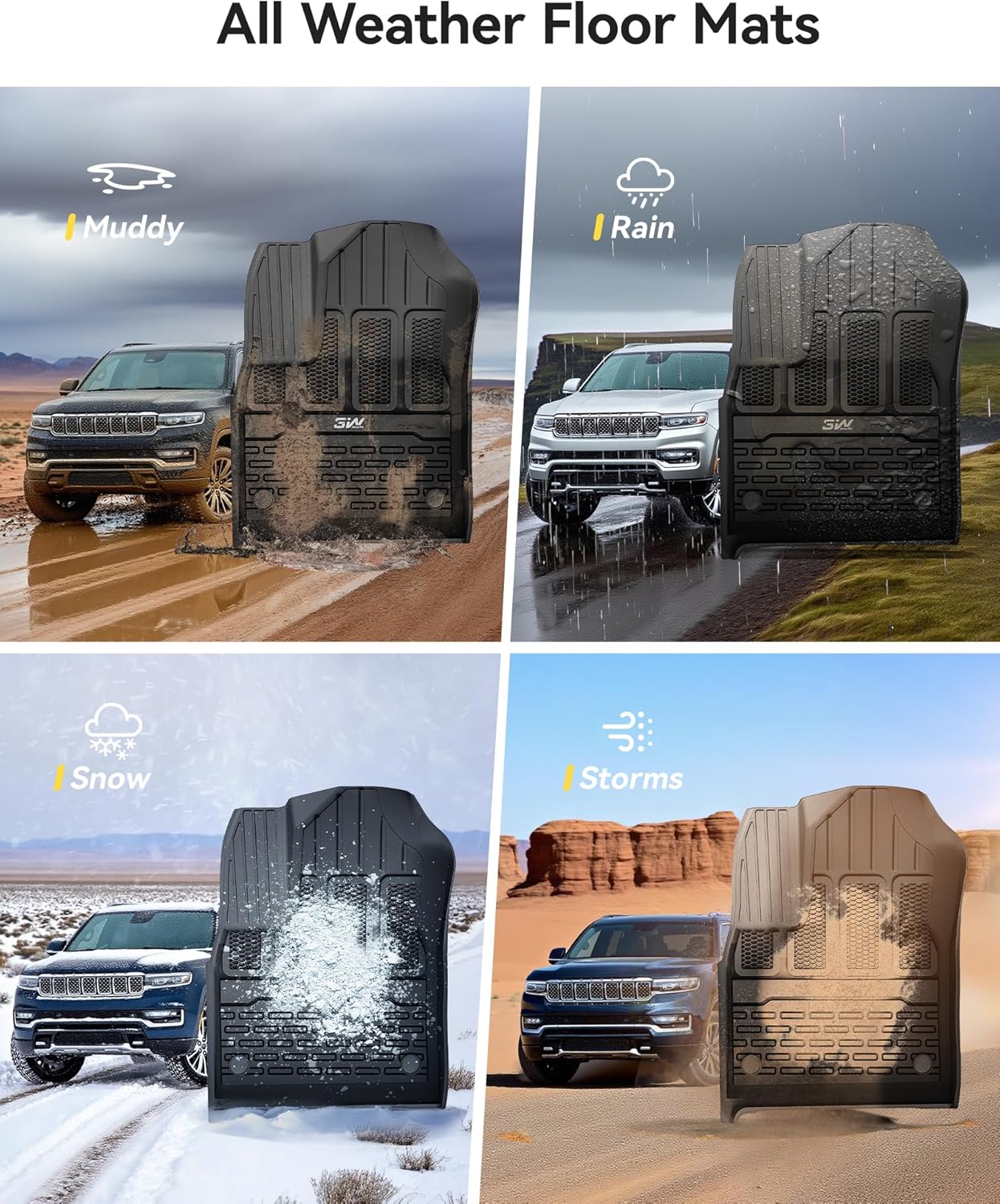- GREEN AND RECYCLABLE GRAND WAGONEER LINERS: The floor mats for Jeep Grand Wagoneer 2022-2025 7 passenger are made with TPE rubber material. This recyclable and flexible materials make no smell even in extremely high temperature and won't crack, curl or harden in sub-zero weather. Bring you and your families a safer and more comfortable interior car environment.