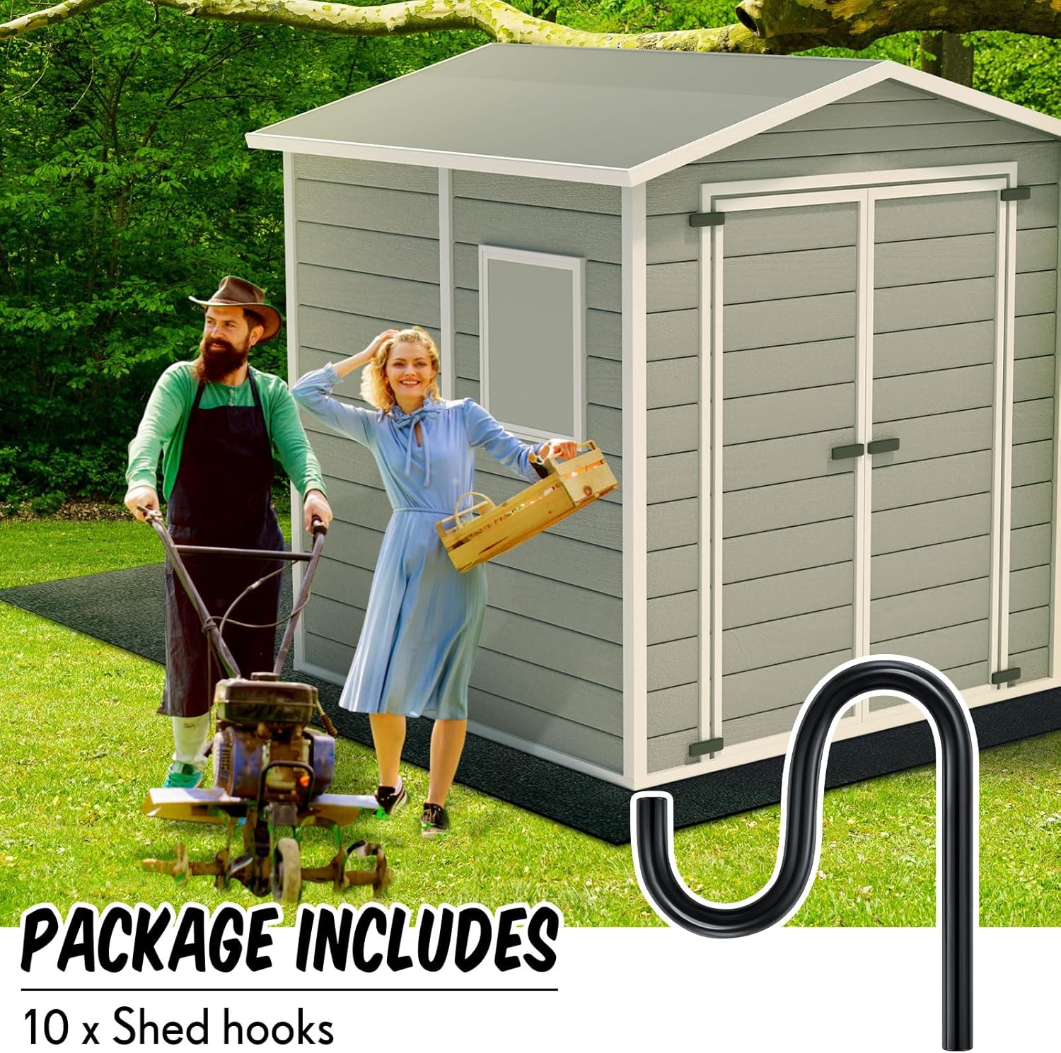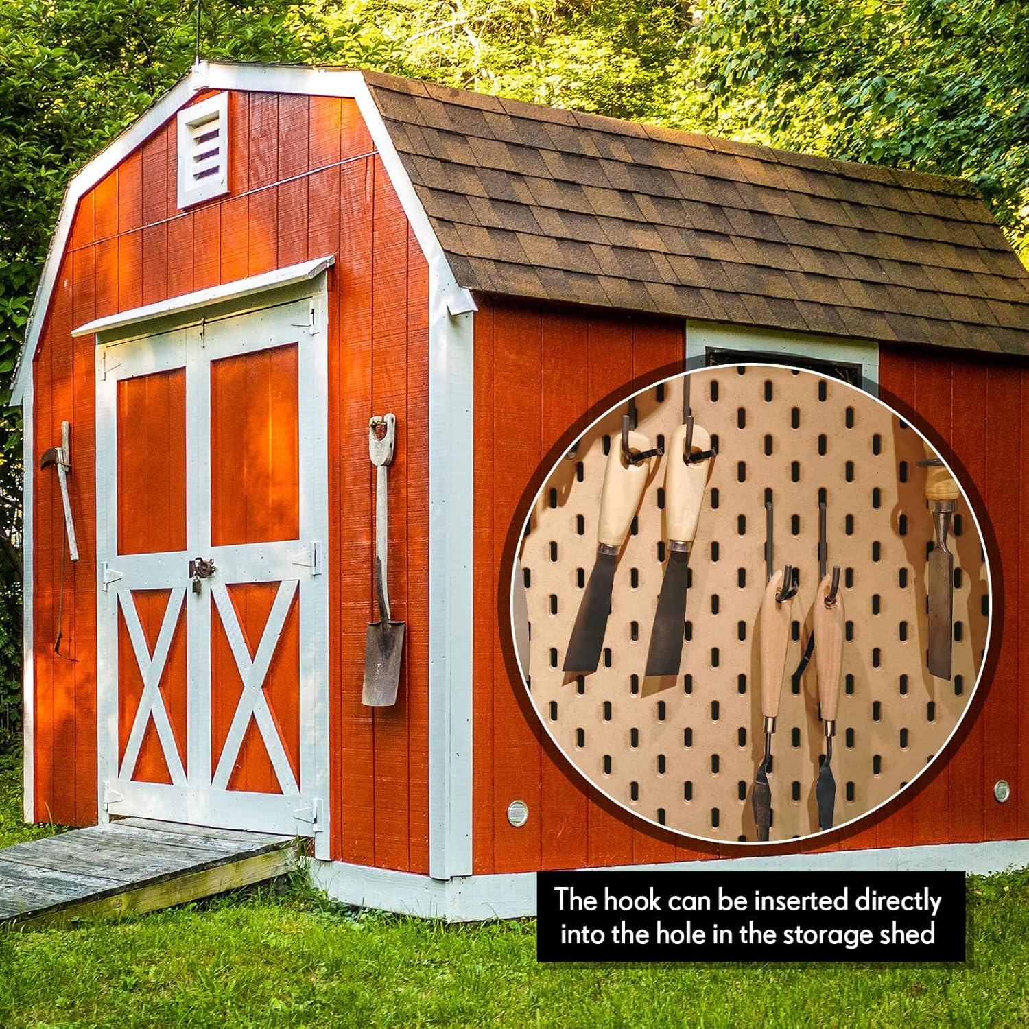 - Universal Design: enjoy a functional and universal design that makes these wall mount hooks an essential for most sheds; By arranging these hooks on your shed walls, you can maximize the utilization of your shed, enhancing its capacity to hold a multitude of tools or goods in an orderly manner