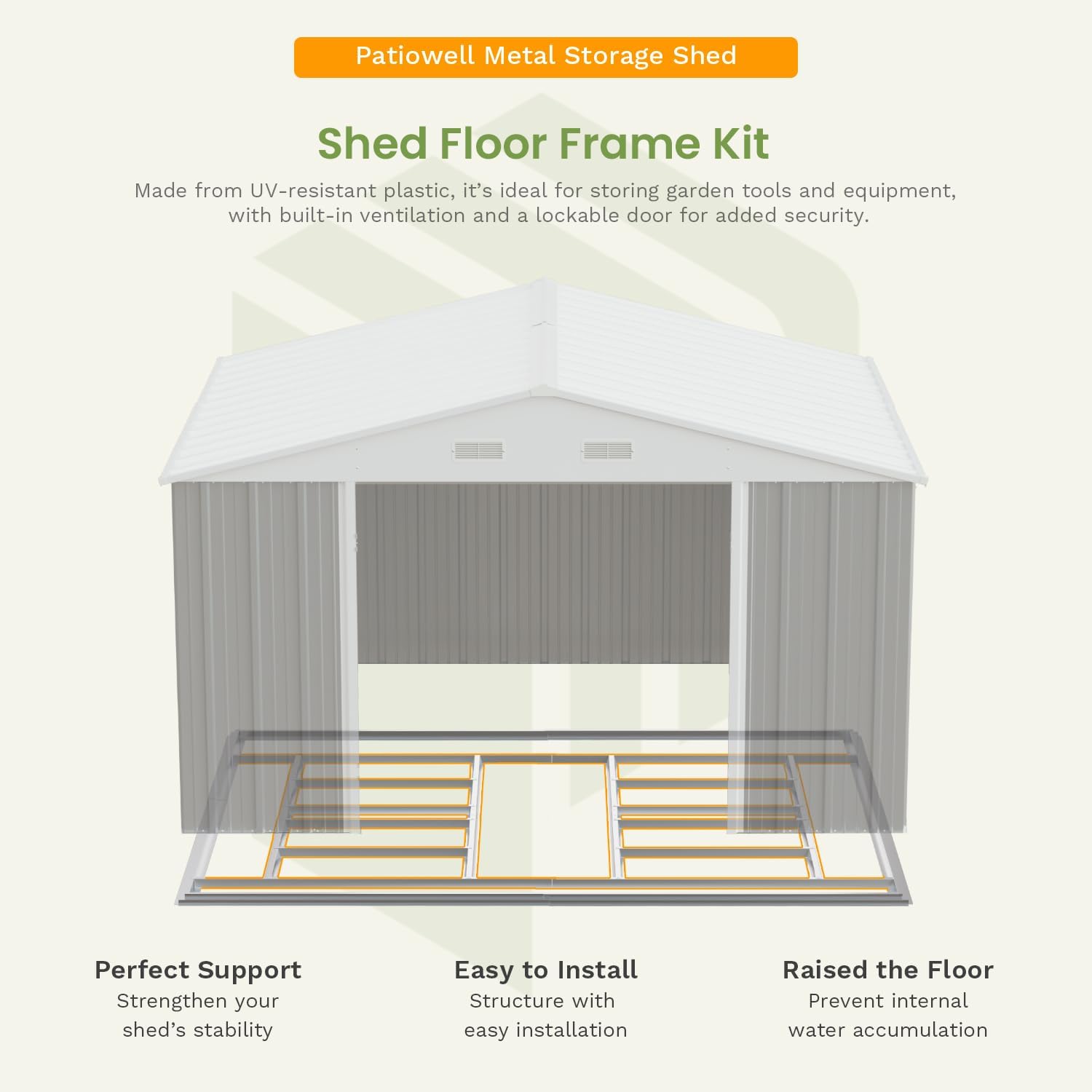 Patiowell 10 x 12 FT Metal Storage Shed for Outdoor with Floor Frame, Steel Yard Shed with Design of Lockable Doors, Utility and Tool Storage for Garden, Backyard, Patio, Outside use, Grey