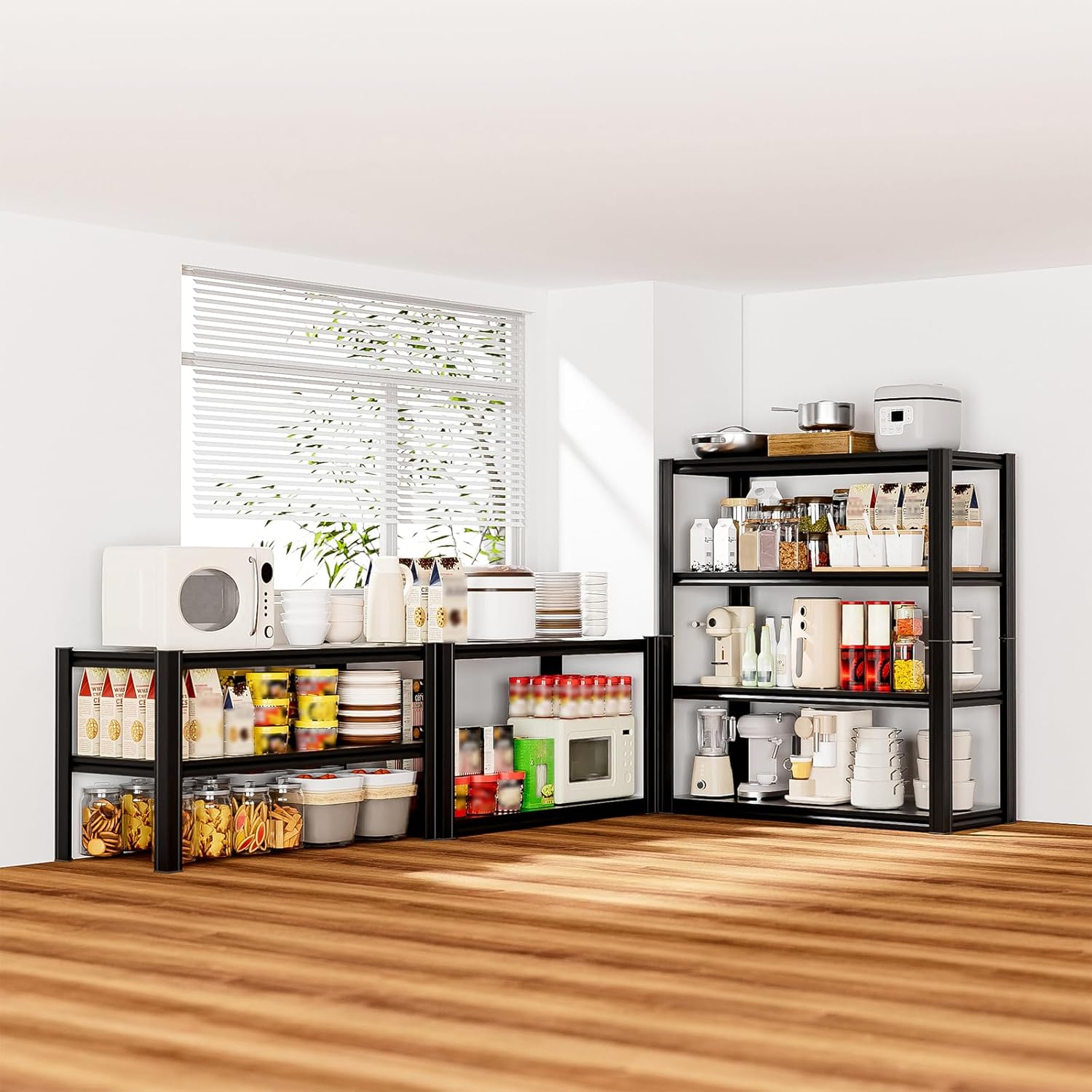 - 4-Tier Garage Storage Shelves: The shelf storage rack surface is covered with a high-quality powder coating, effectively withstanding moisture, corrosion, and everyday wear and tear, thereby prolonging the service life of the rack. It boasts a wide range of applications, being not only ideal for home garages but also particularly suitable for warehouses, basements, carports, kitchens, retail stores, and industrial storage facilities.
