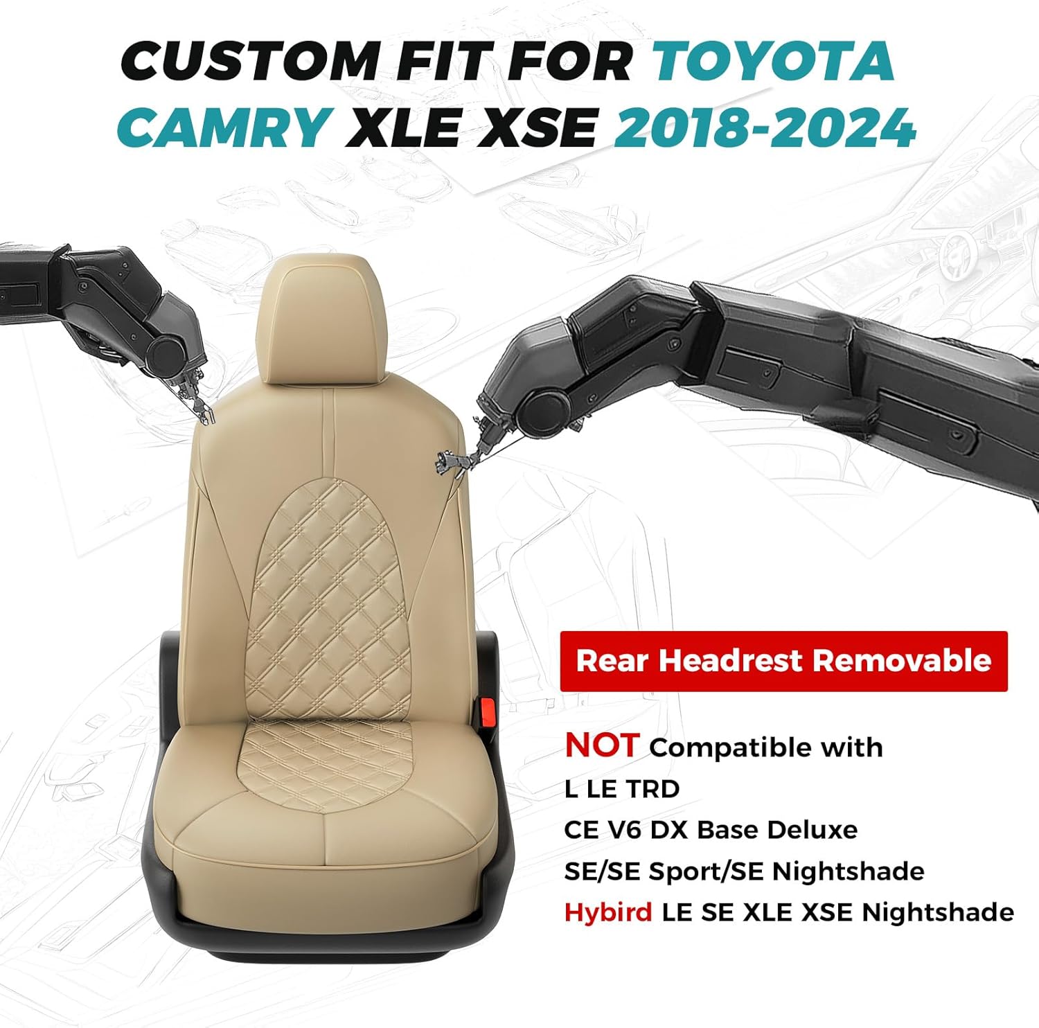 for Toyota Camry Seat Covers XLE XSE V6 2018 2019 2020 2021 2022 2023 2024 - Custom Fit Car Seat Covers Full Set, Breathable Waterproof Leather Seat Covers for Cars, Beige Not for Hybrid