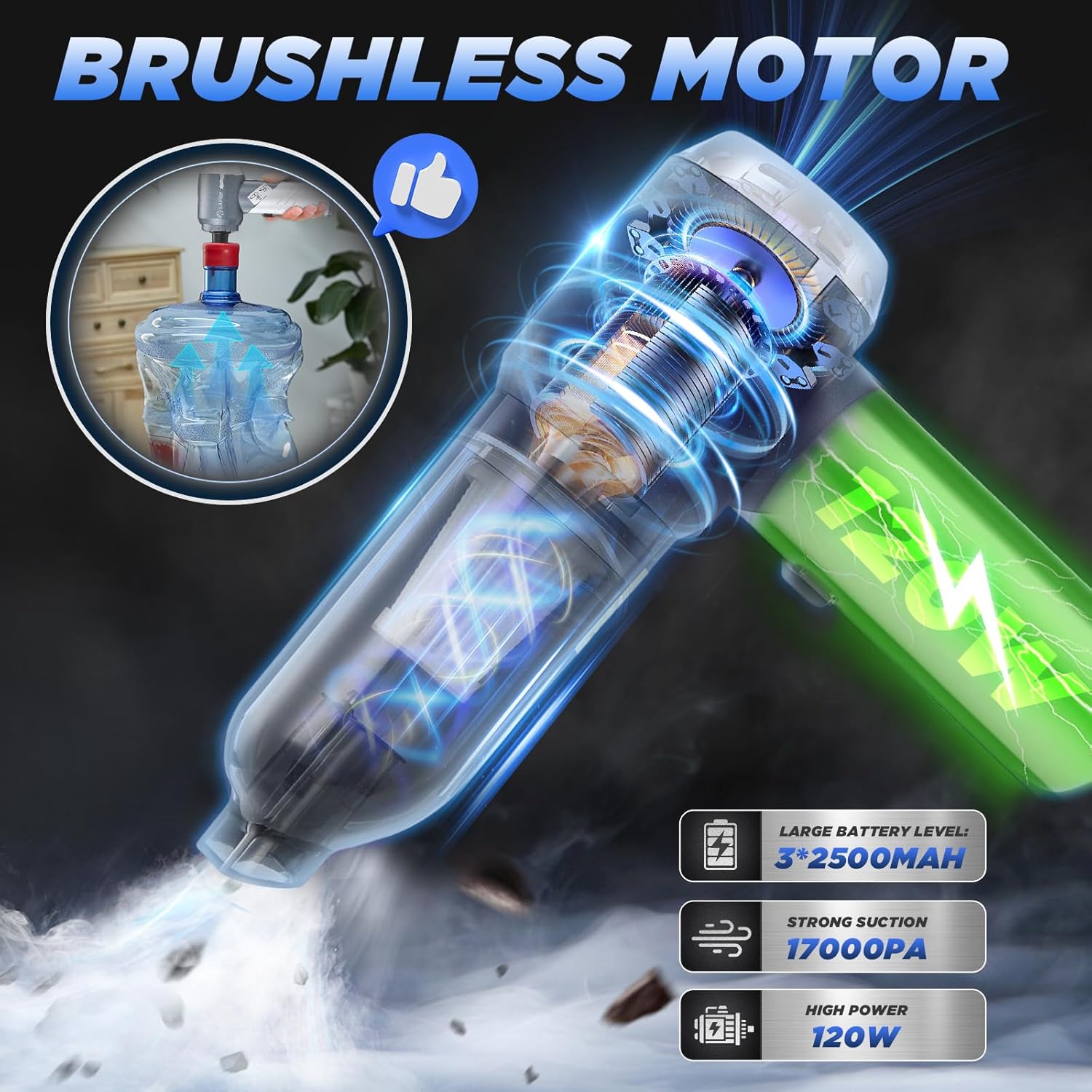 - 【Powerful Suction Force】The motor of this car vacuum cleaner has been upgraded to have a super strong suction of 17000PA, which can achieve three levels of suction adjustment, making it very easy to clean large and small areas of stains, including sand, dust, pet hair.