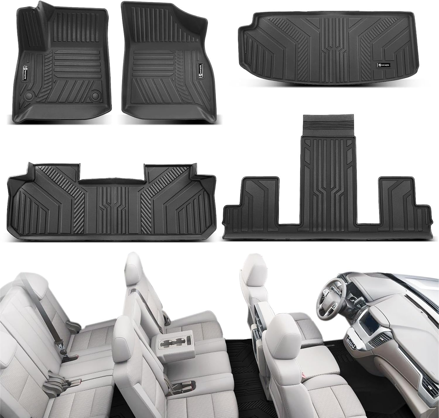 YHTAUTO Floor Mats & Cargo Liner Fit for 2018-2024 Chevrolet Traverse 7 Seats with 2nd Row Bucket Seat, TPE Rubber All Weather Floor Liner, Traverse Accessories Odorless Car Mat